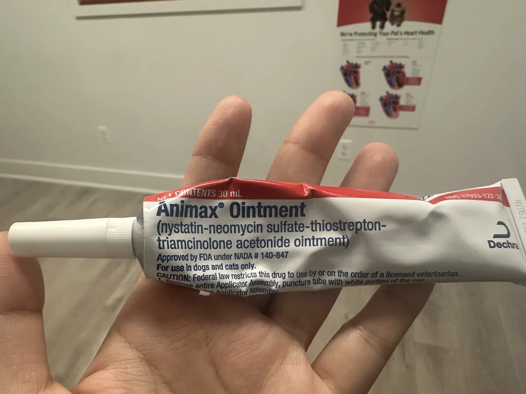 💊分享两种药膏,为大家立省200刀诊所费用!图2 Animax Ointment有抗生素成分是处方药,上次Emma爪子发炎也是用这个,皮肤红肿外伤必备外敷消炎药。图3消菌洗耳药,非处方药普通网站都能买到。这两种每天各抹一次,持续7-14天(根据严重程度,好了就可以停药了,个人经验等看不到棕色油蜡、不再甩头抓痒了基本就没事了)