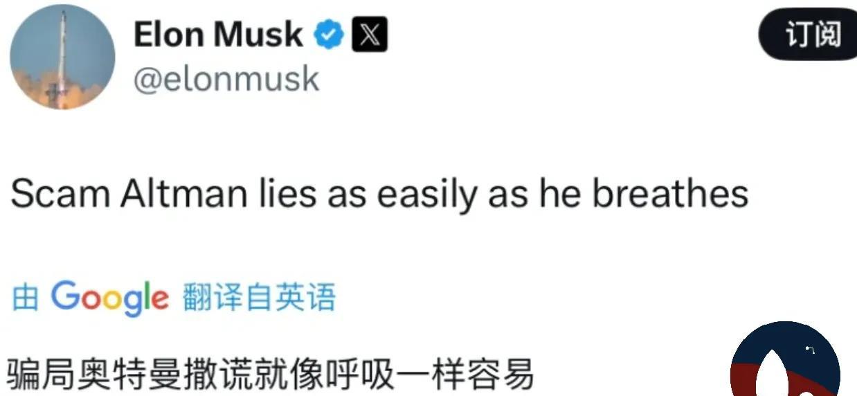 马斯克和奥特曼开始对骂模式。 grok只是马斯克手上的一个项目,OpenAI是奥