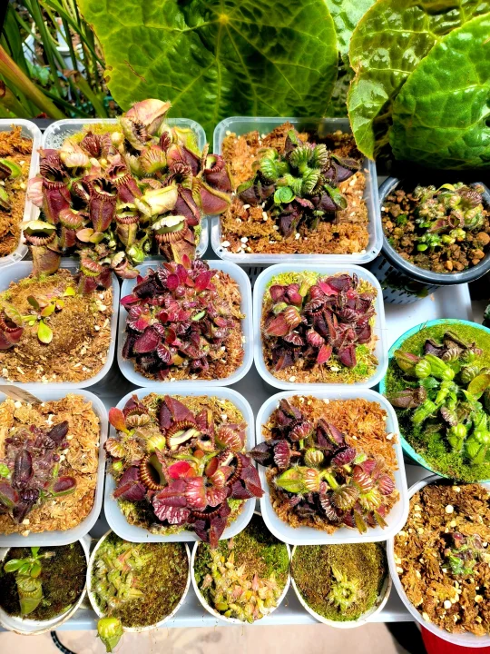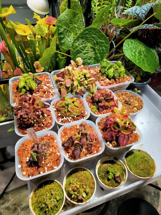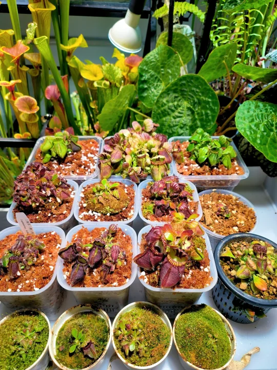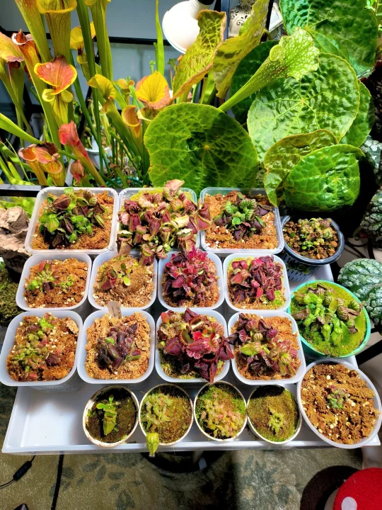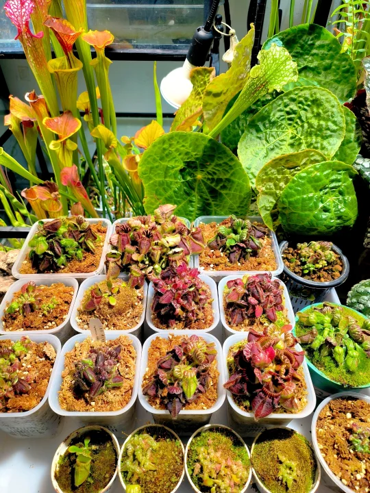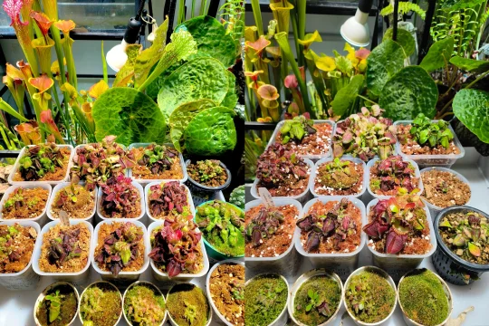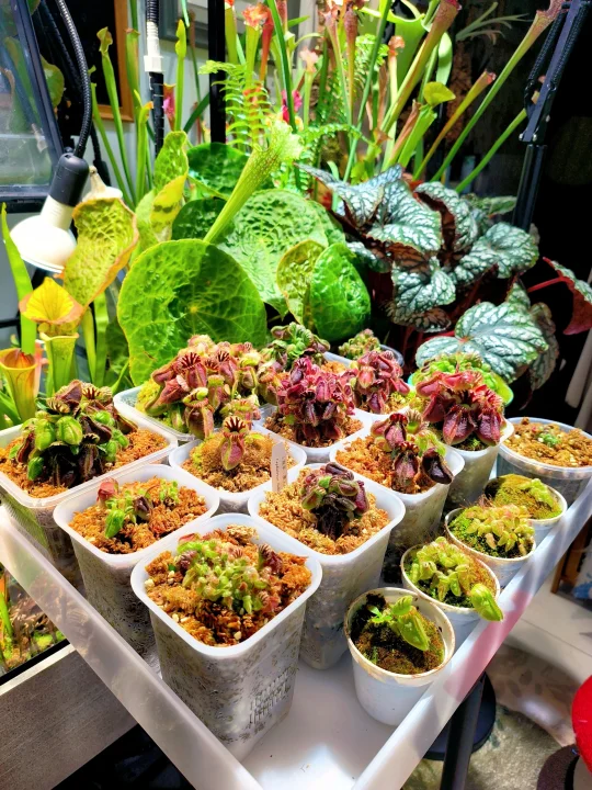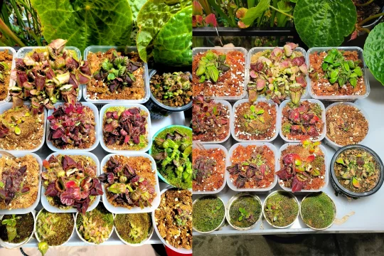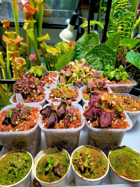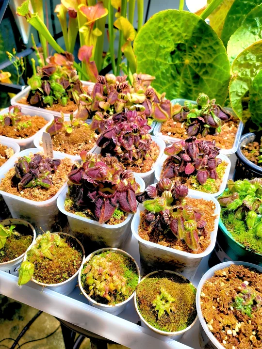 长势都很不错,我买了一盆德捷土瓶草,自己分了两盆,一盆两个头,刚开始都觉得要挂了,因为有一个分株太小了很弱,放到冰柜光弱的地方养护两周,长势可以就挪回去,活了[捂嘴笑R]现在也在长新瓶子【图四最左两盆】