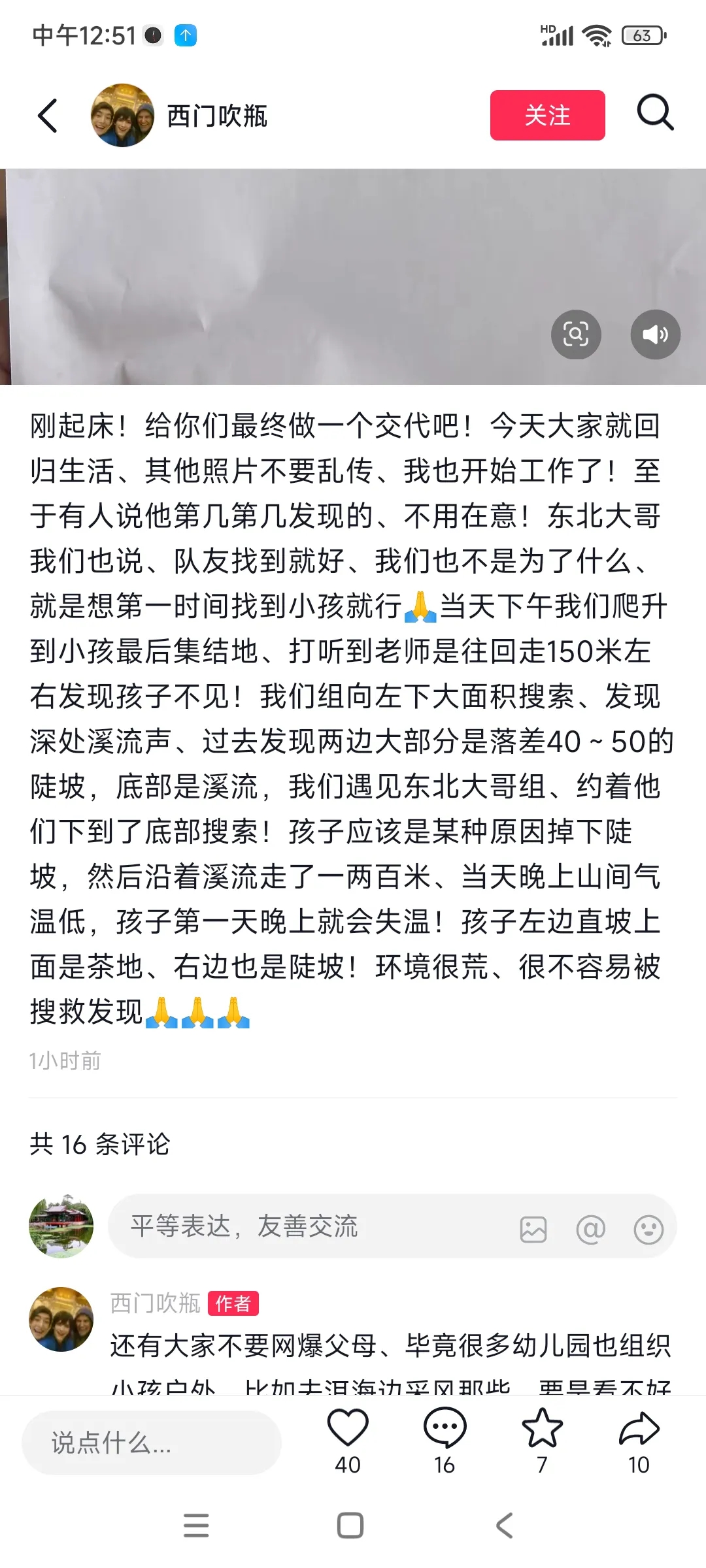 以上是发现男孩的搜救大哥发的内容,真的太痛心了,可怜的孩子,就这么离开了!