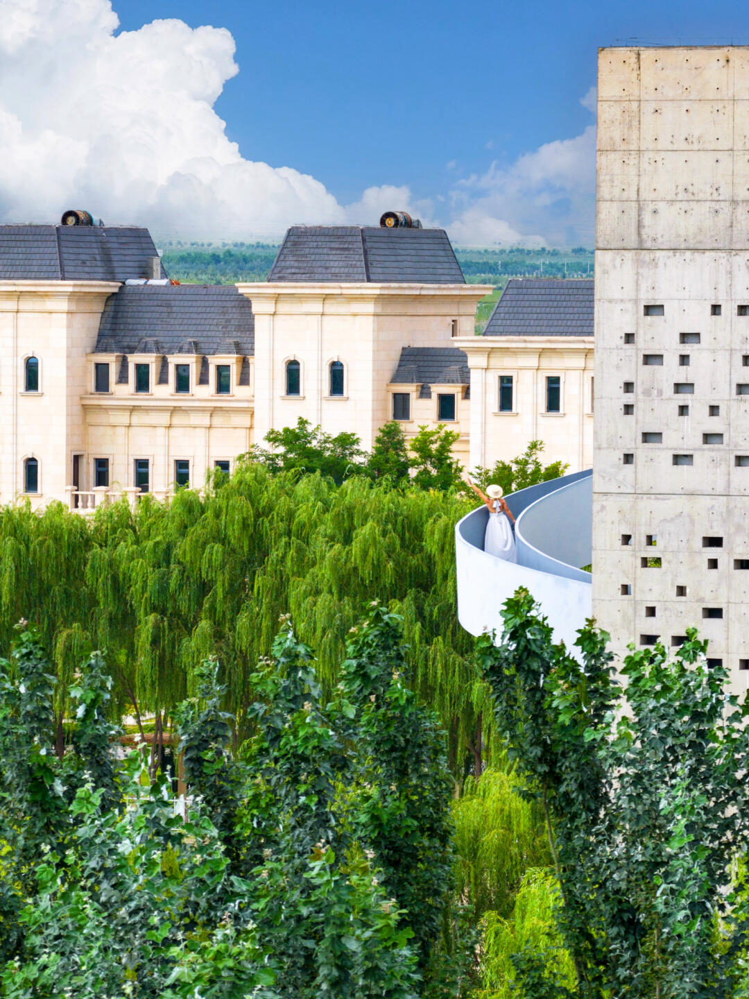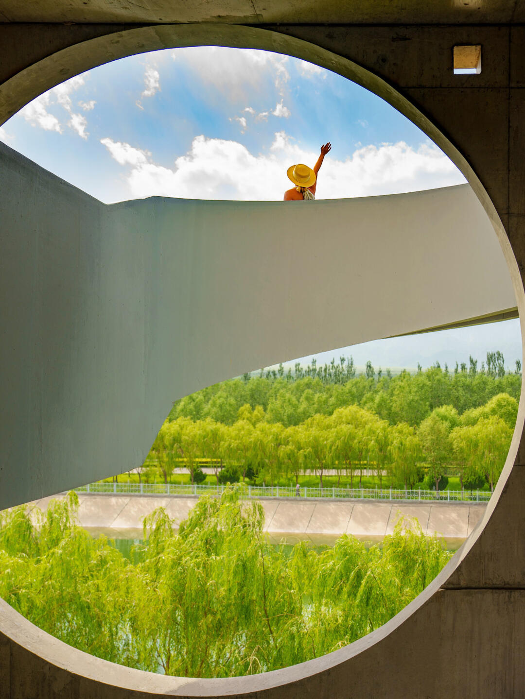 25米高的标志性水塔,可以远眺连绵起伏的贺兰山,俯瞰一望无际的葡萄园
