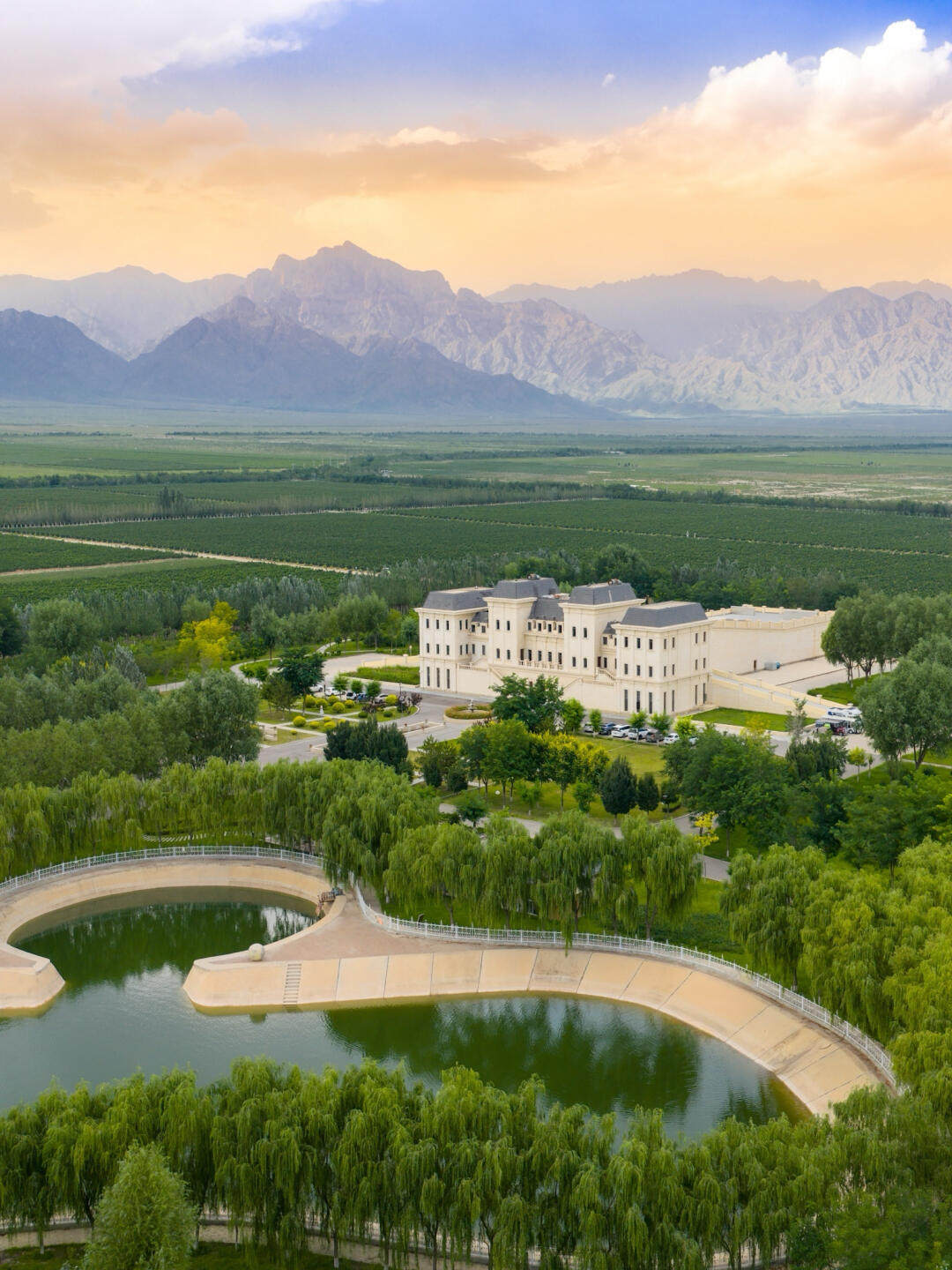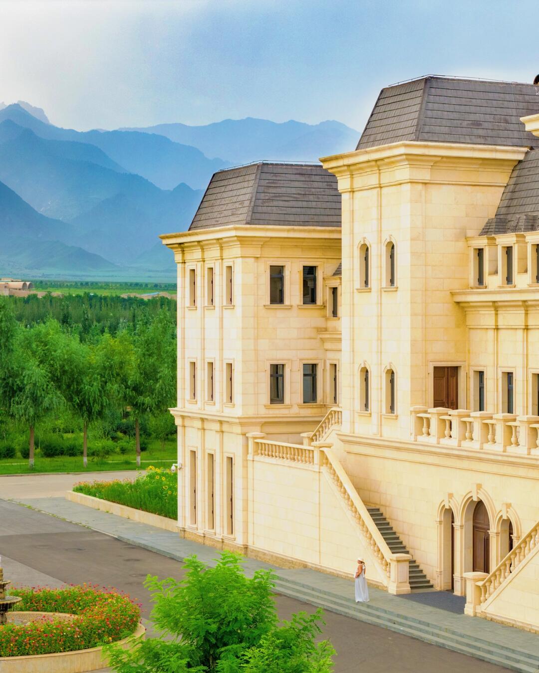 像城堡一样的庄园与壮丽的贺兰山相呼应,