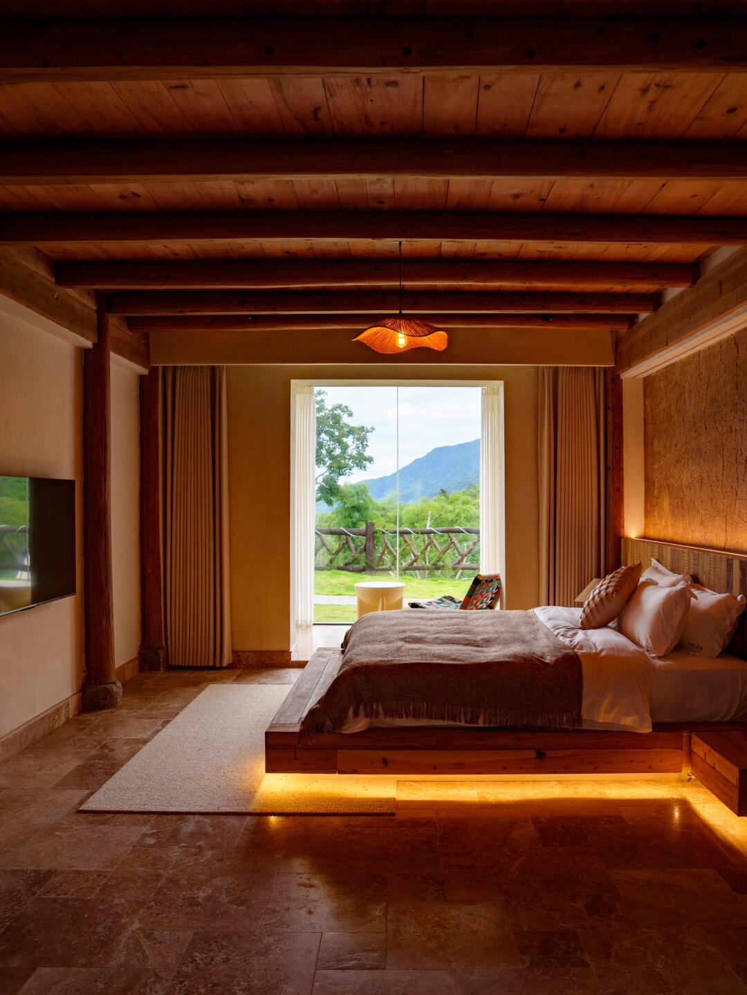 住的复式是保留了旧房子的夯土墙和老木梁,