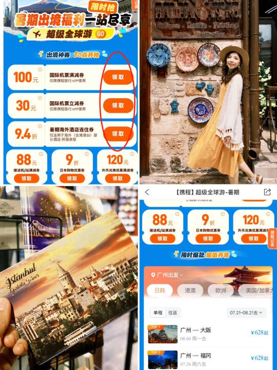✅100出境满减券,-30出境立减券 ✅9.4折海外酒店券 ,-88送机送站券 ✅如果去日本 还有9️⃣折购物优惠券 ✅120元外币兑换优惠满减券
