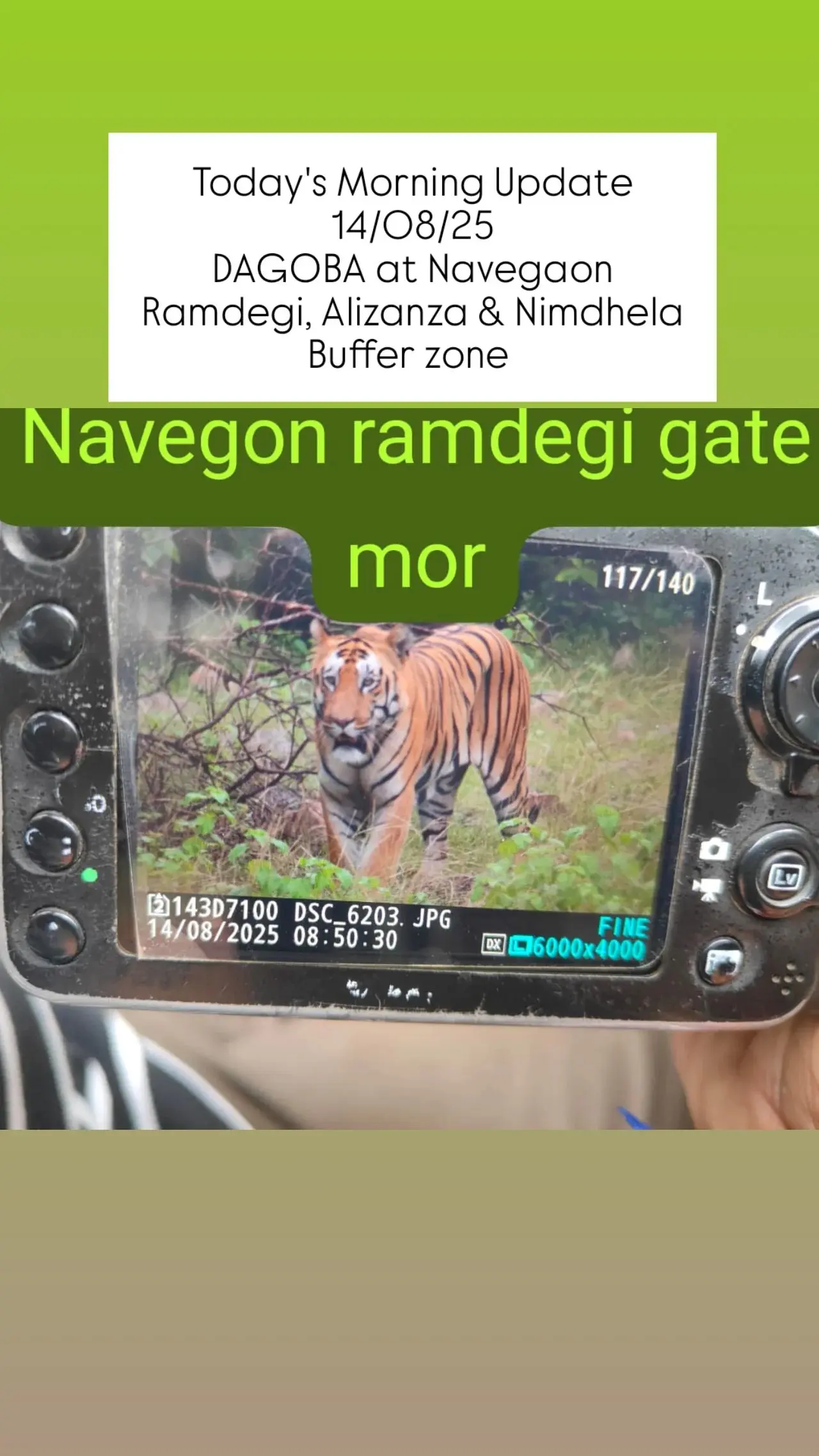 Alizenza buffer 是无所畏惧的 Chota Matka(他在与来自 Bramhapuri 地区的 Brahma 战斗后仍然受伤)的领地。过去几个月,我们听说包括 "Veerbhadra" 在内的许多老虎在他的领地活动。