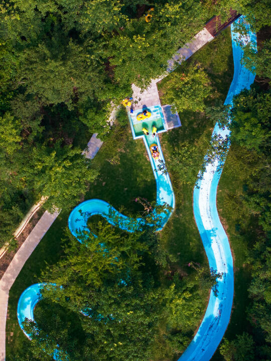 还有水上滑道、mini漂 ,周围树林遮蔽