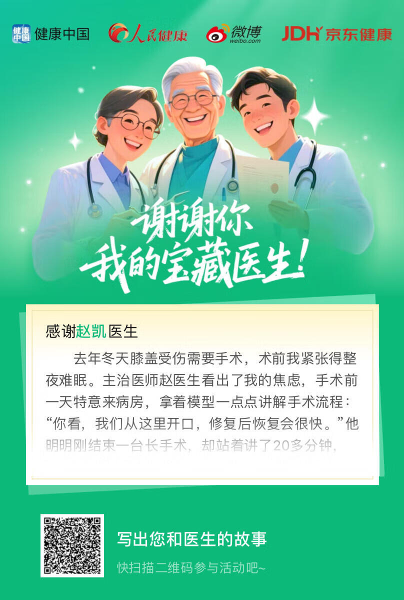 他明明刚结束一台长手术,却站着讲了20多分钟,临走时拍着我的肩膀说:“放轻松,我们会把你照顾好。”那句承诺,让我彻底放下了顾虑。真的特别感谢赵医生!