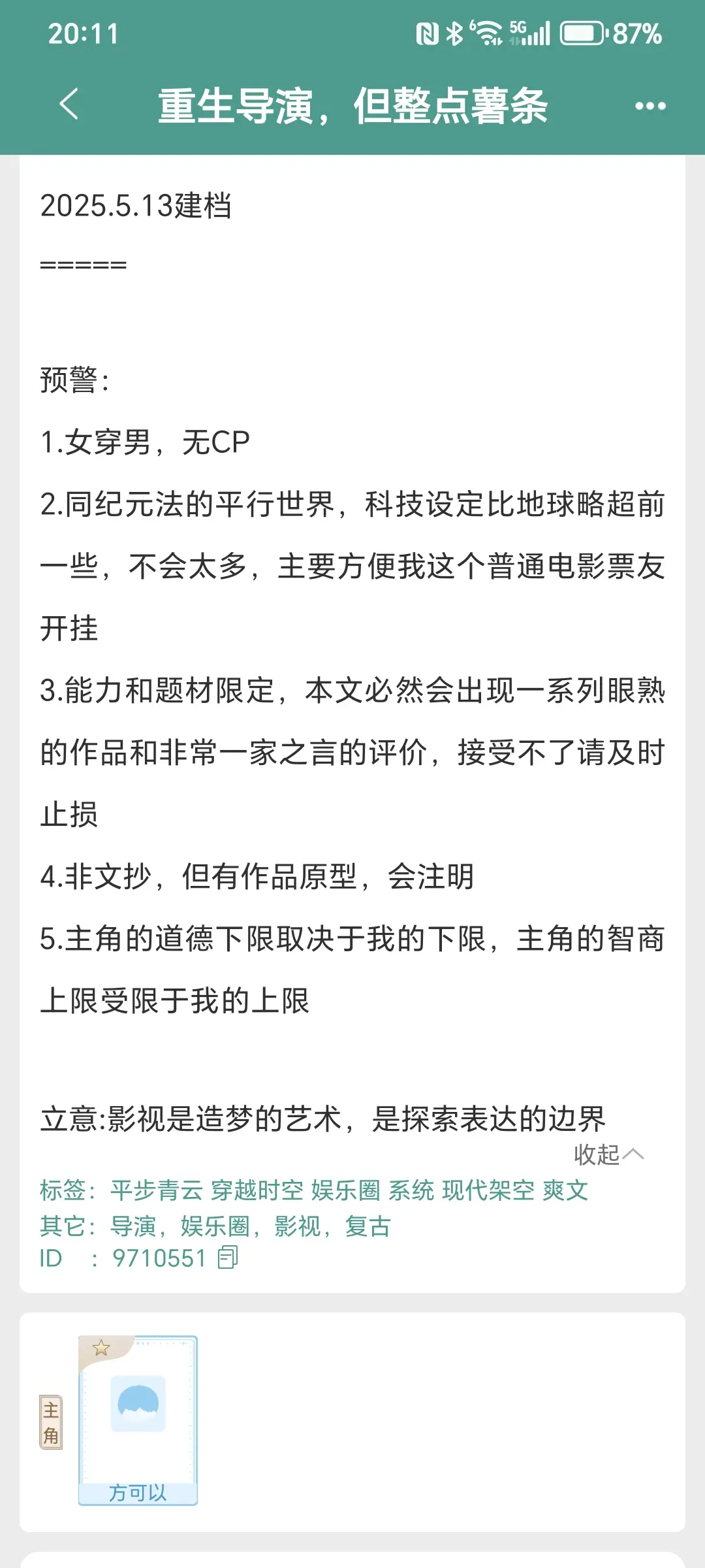 《重生导演,但整点薯条》小说推荐 文荒推荐 晋江小说 女穿男,导演拍戏