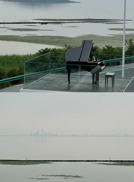 1️⃣明月湾码头:超长栈桥直插太湖,傍晚时分橘色天空倒映在水面绝美