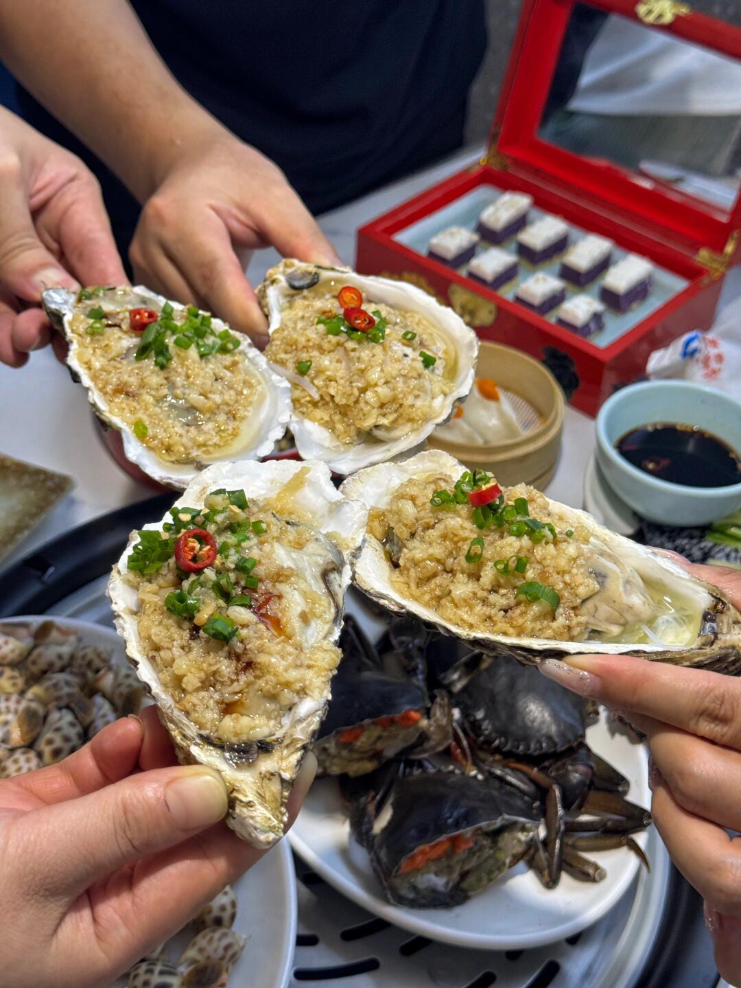 ✔️生蚝:蒸得刚好🦪每只都和手掌一样大!一口爆汁,滑溜溜带着大海的味道🌊