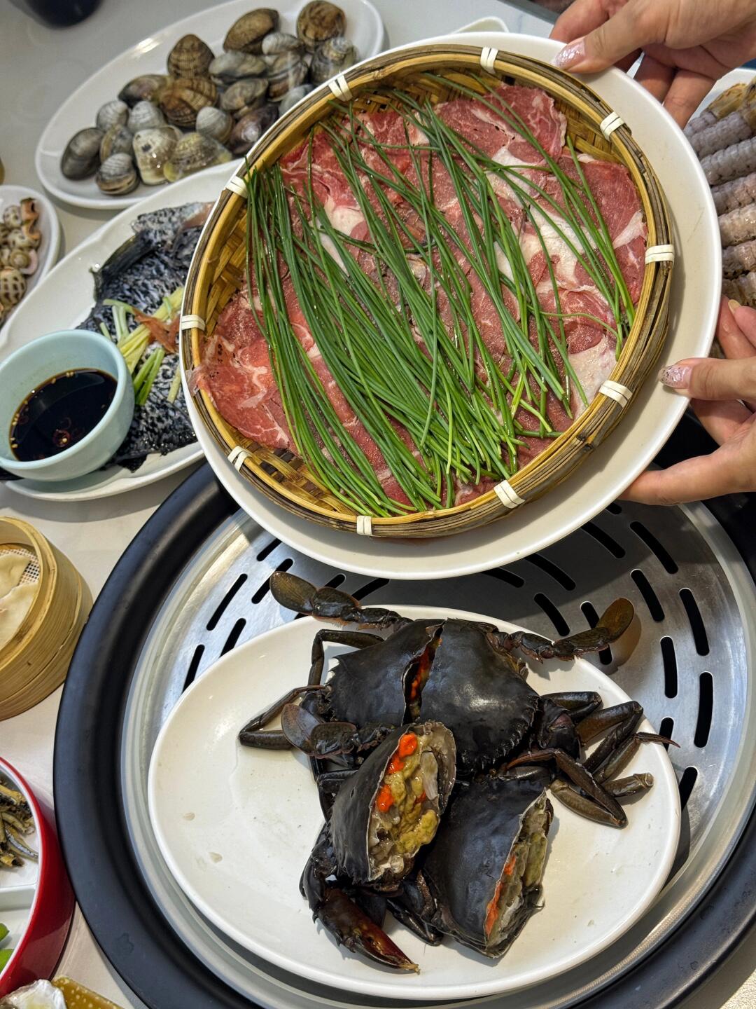 被温州朋友安利的【尚蒸燚】,开了十几年的老店果然靠谱!老板就是温州人,对海鲜新鲜度超执着,海鲜池里帝王蟹、小青龙、螃蟹...🦀个个鲜活到扑腾,现捞现蒸的快乐谁懂!🤤