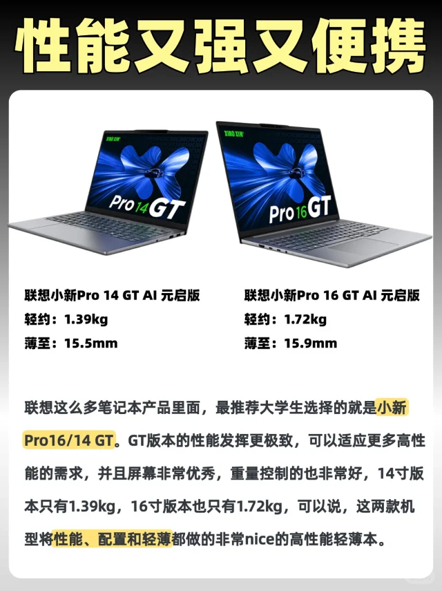 高考完的同学们最近应该陆陆续续收到了录取通知书,是不是开始琢磨起了购买笔记本电脑了呀?联想这么多笔记本产品里面,最推荐大学生选择的就是联想小新Pro16/14 GT AI元启版。GT系列的性能发挥到了极致,视频剪辑+游戏轻松拿捏,屏幕自带护眼功能,还有不妥协的“轻薄”。最近学生暑期优惠+国补优惠力度很大,这款性能强又轻薄的笔记很值得入手,有需要的同学可以放心冲。