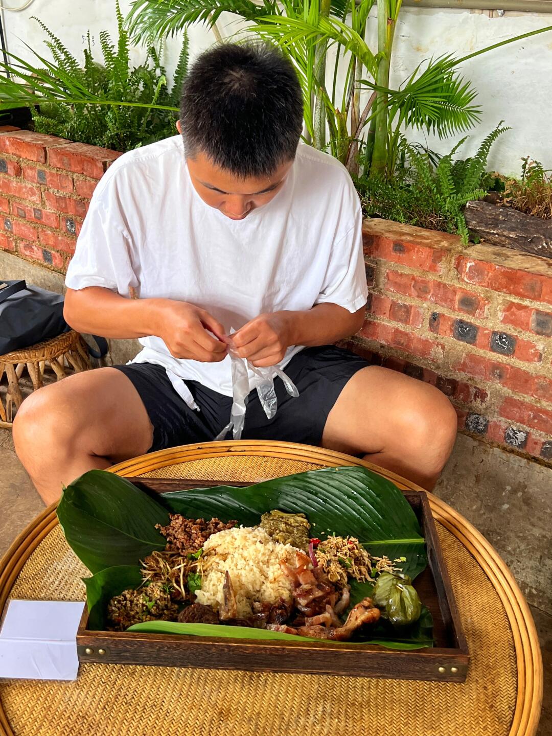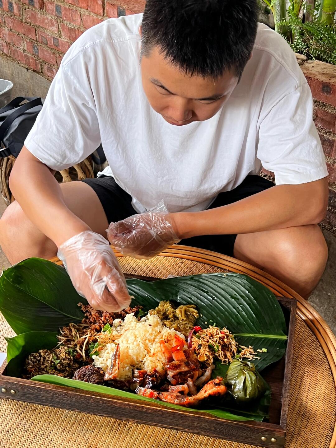 但是呢~是可以打包带走的,打包是直接用芭蕉叶外面加个绳子绑一下,异域感拉满。(我好爱我好爱,啦啦啦啦~)