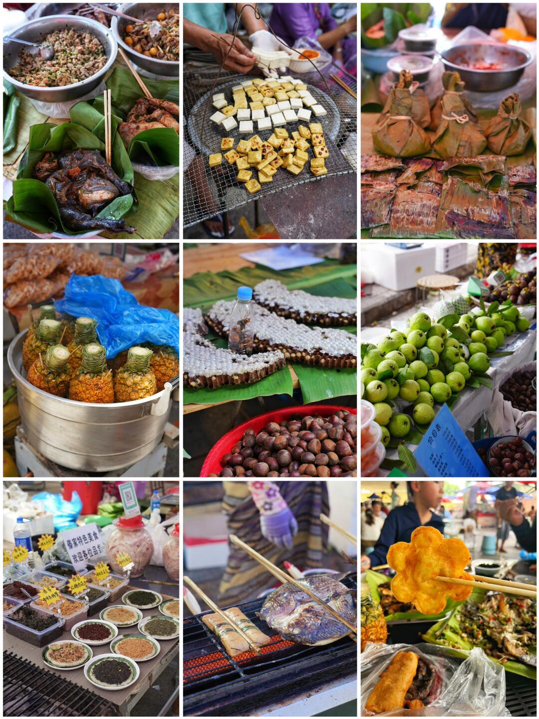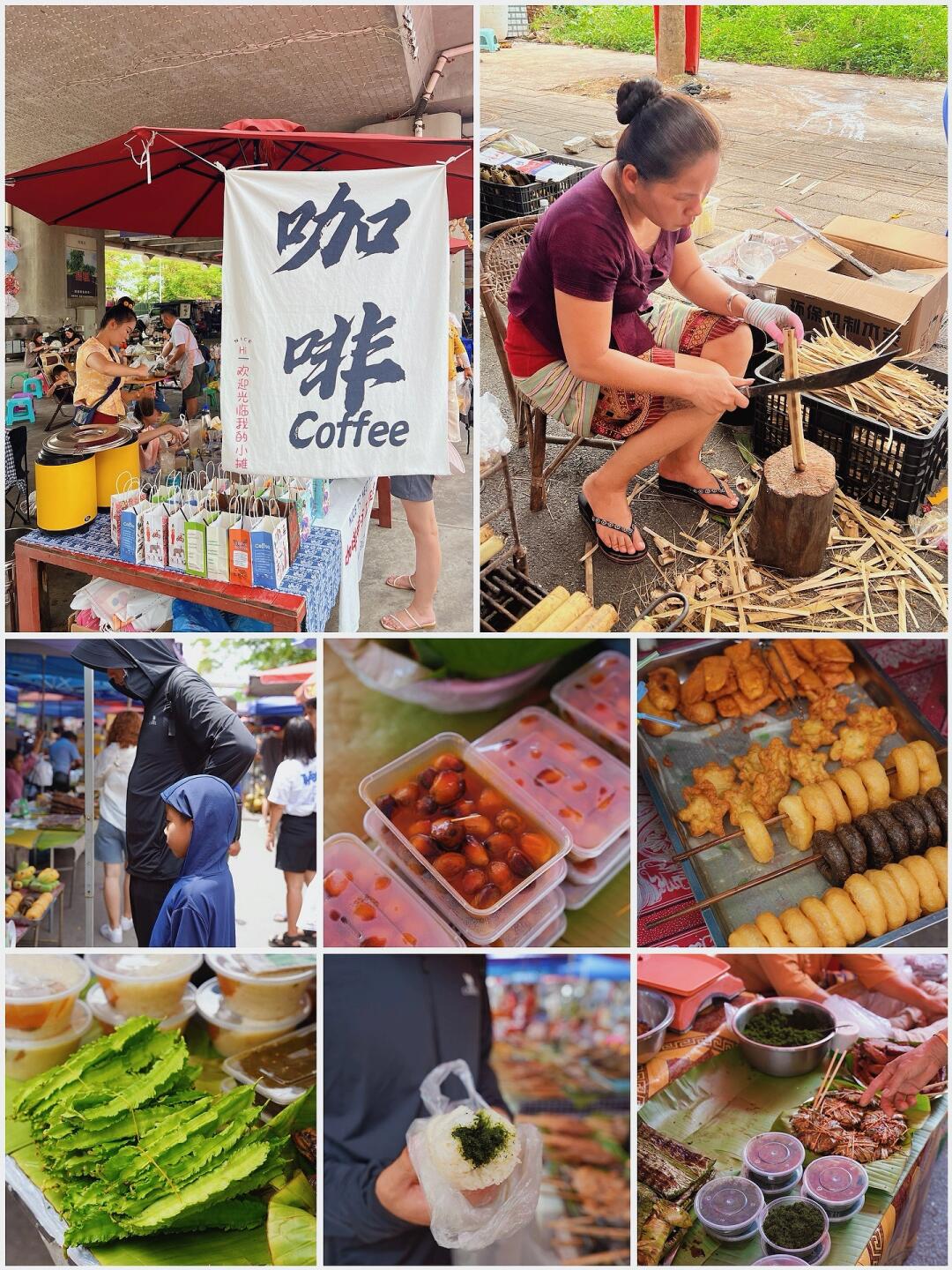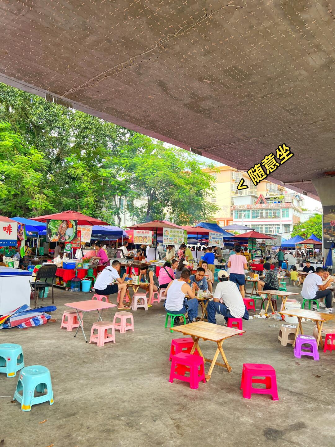 •桥下沿摊位有一溜桌凳的,不怕没位置坐,从头到尾还好不算长,当时有很多排长长的摊位,好多不知名的傣味小吃。建议少份量,多样子,这样可以多吃几种价格每家差别不大,可以多逛逛。