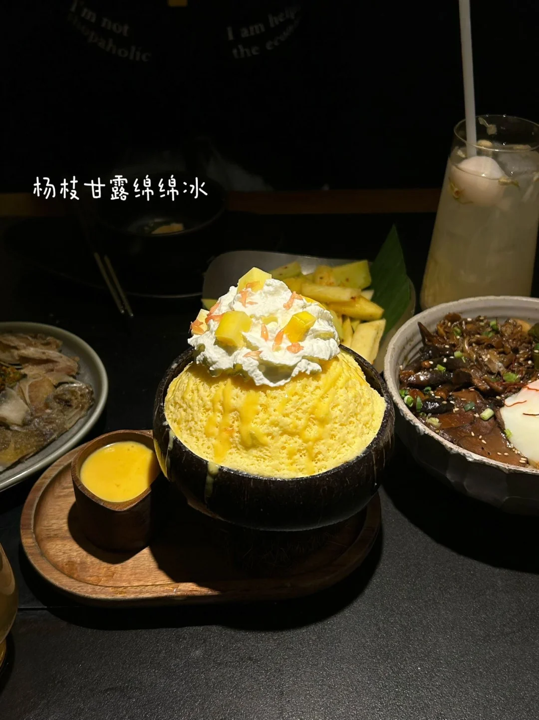上次点了抹茶冰 这次尝试一下杨枝甘露的 清爽一些 解辣解腻 很浓郁的芒果味~