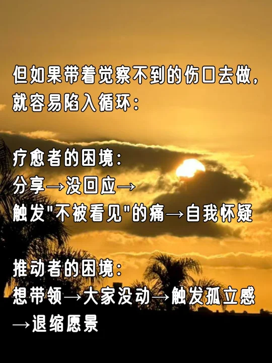 疗愈者的困境: 想分享 → 没回应 → 触发“不被看见”的痛 → 自我怀疑