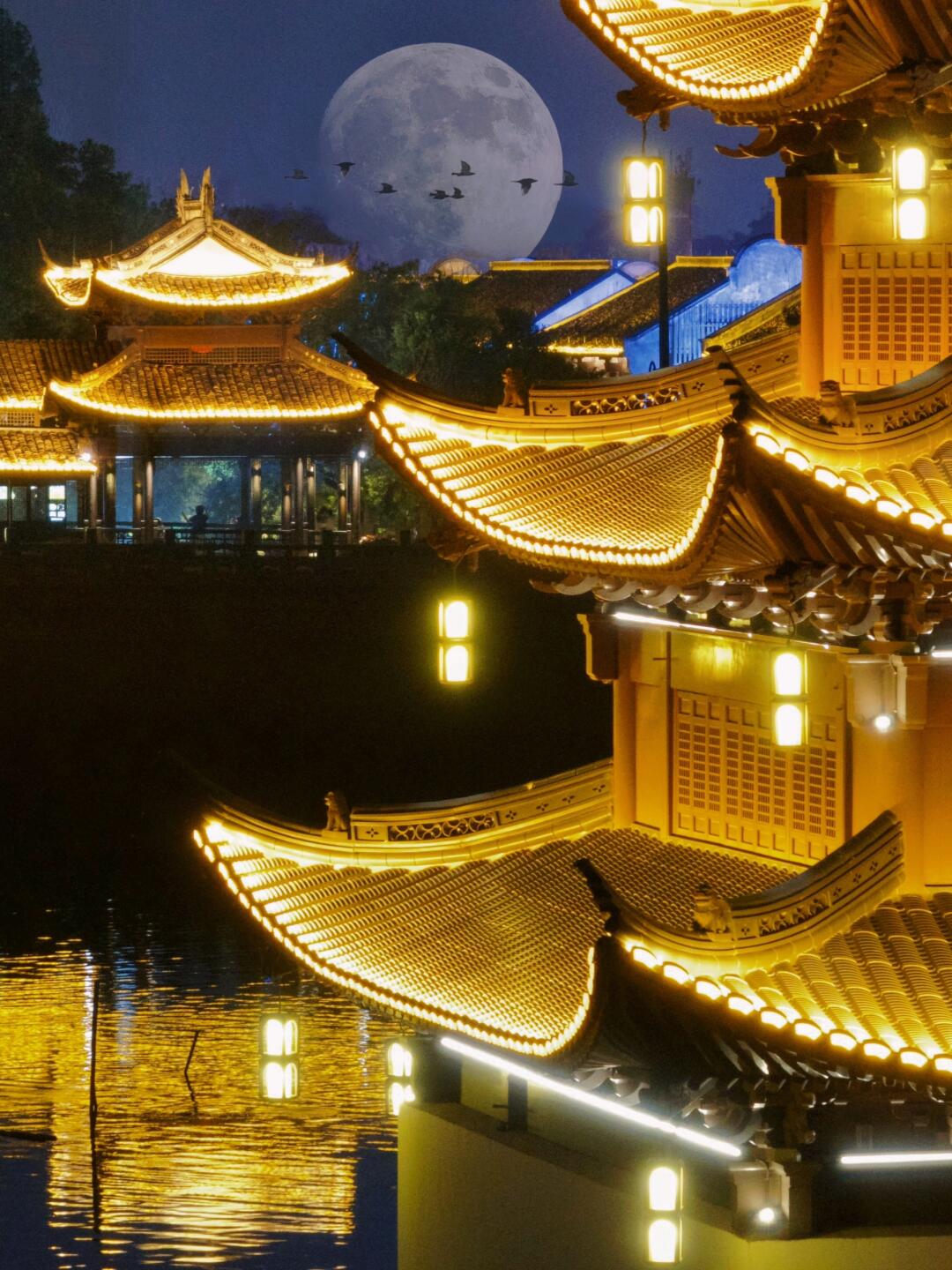 •今宵明月照青瓦 映镜水中画