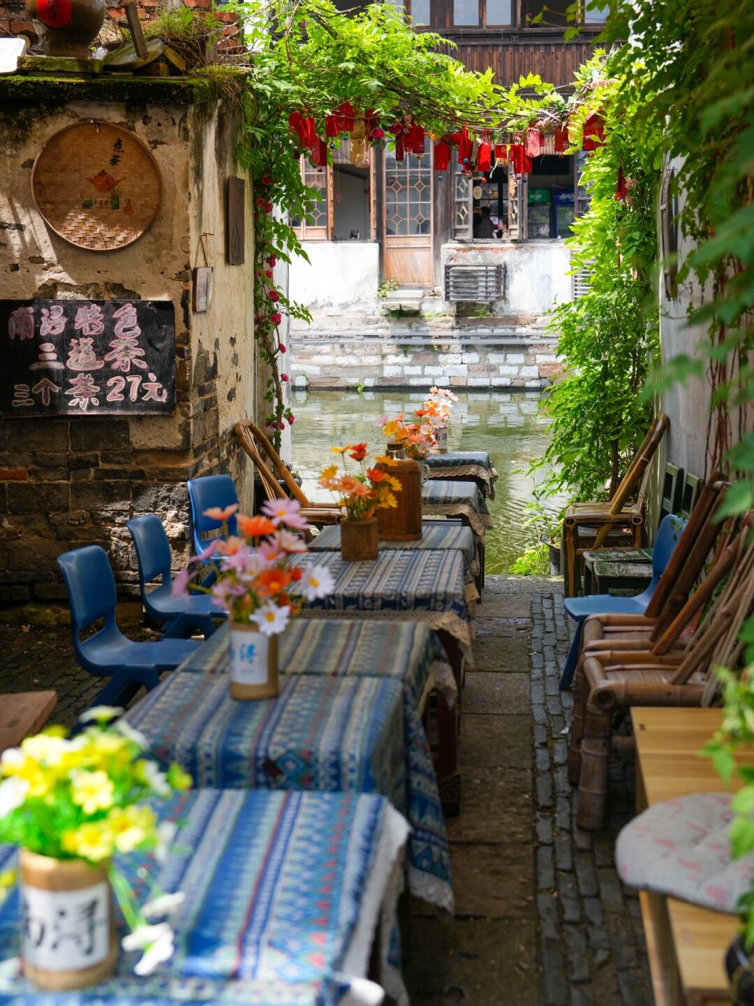2️⃣长发桥:很喜欢的一座桥,搭配岸边的绿树小店,好安逸!