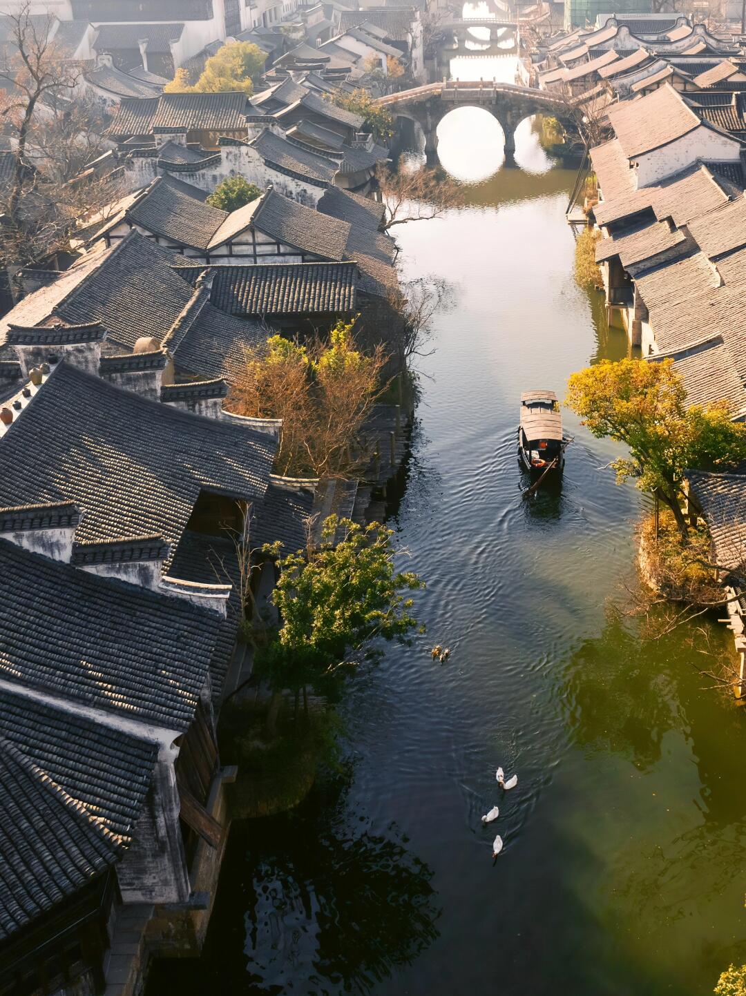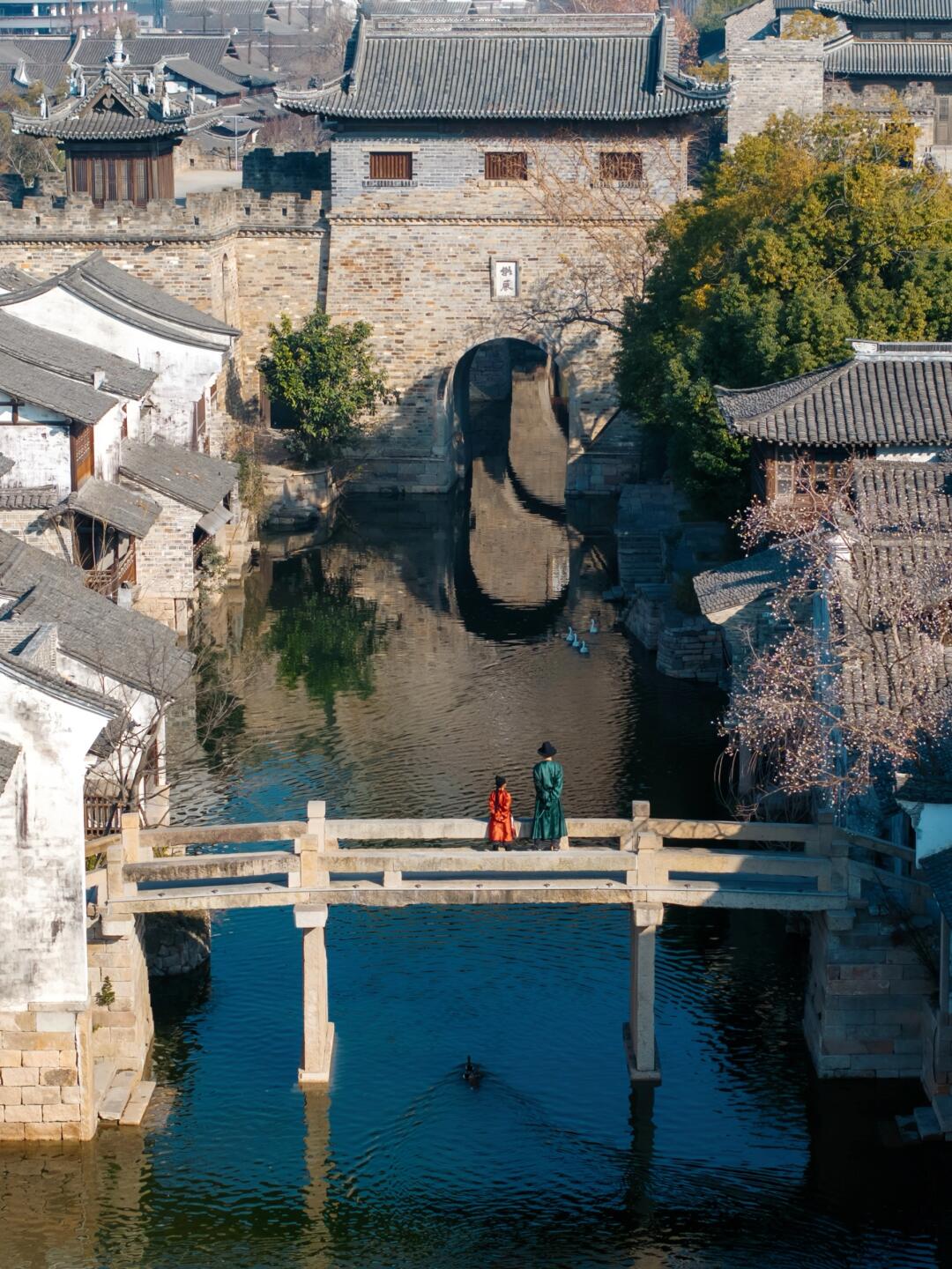 这座距今600多年的城门,摇橹船穿梭其间,江南水乡风光