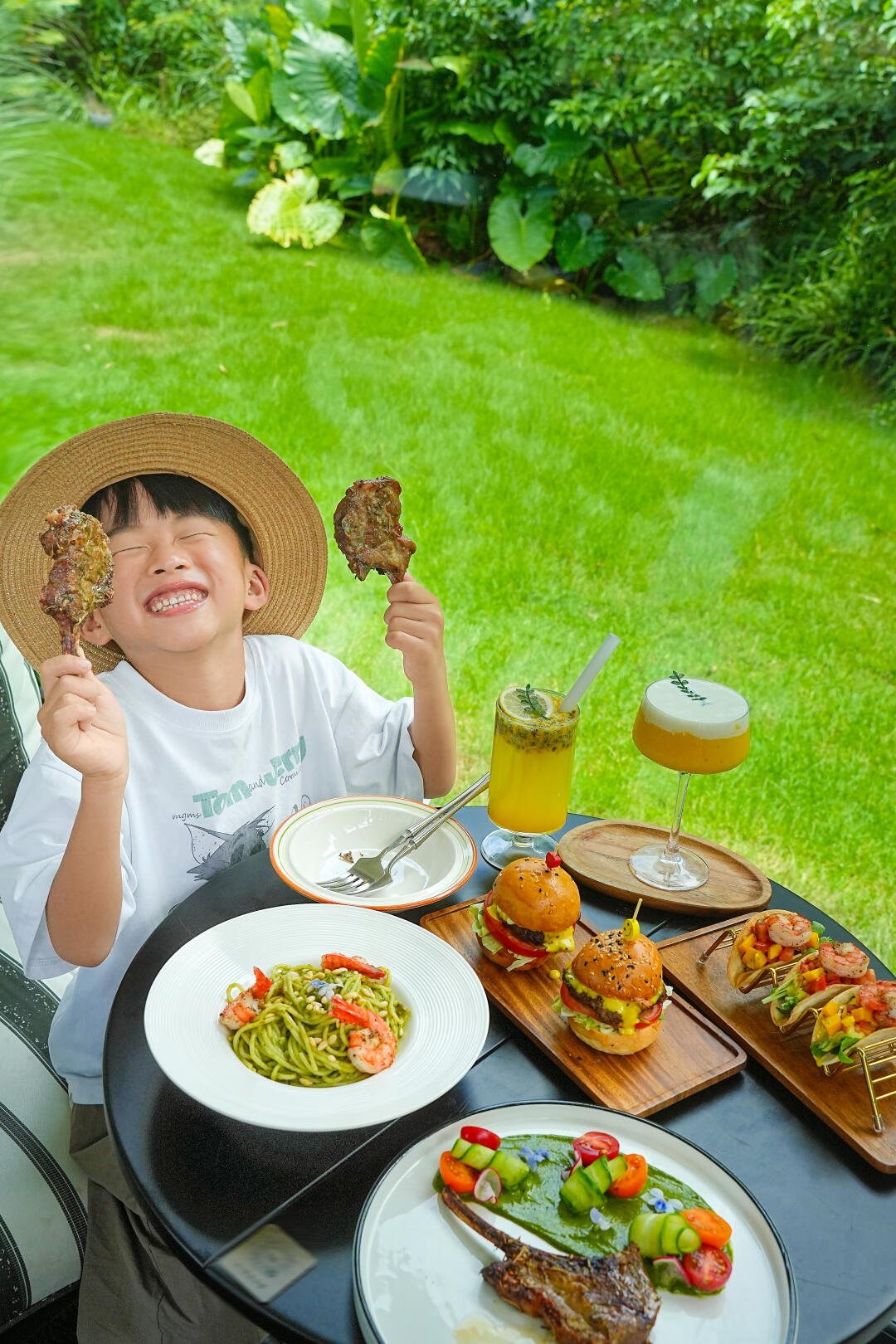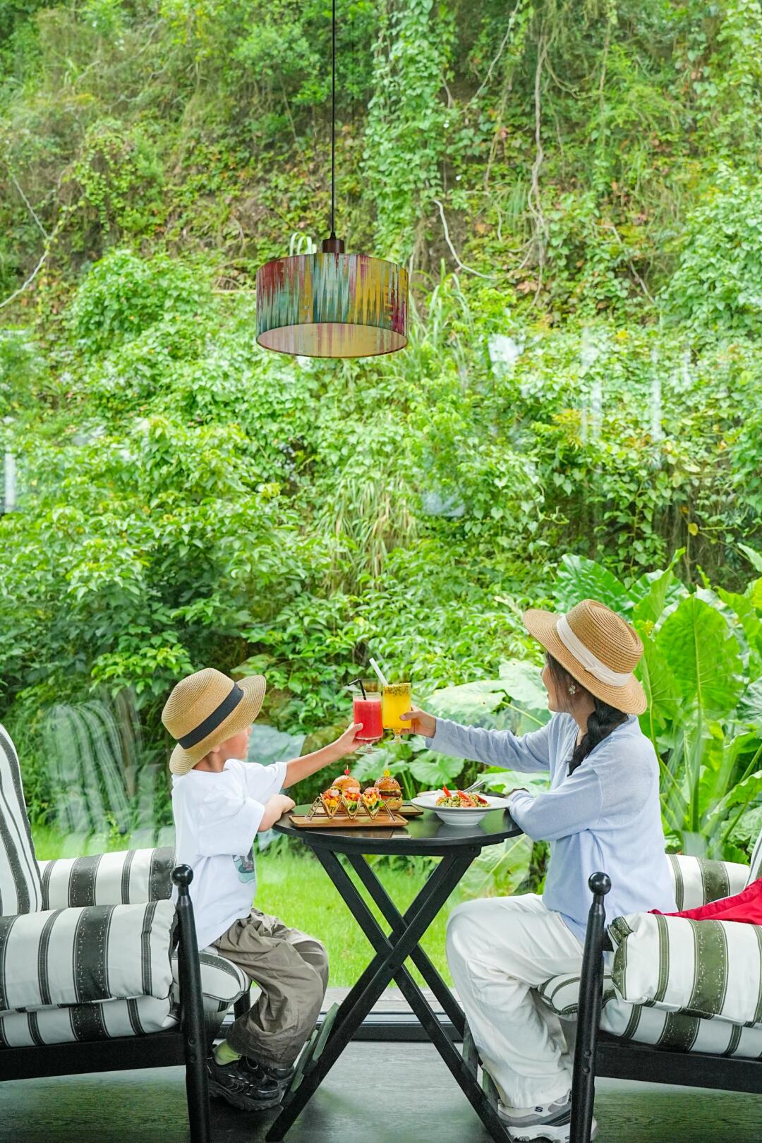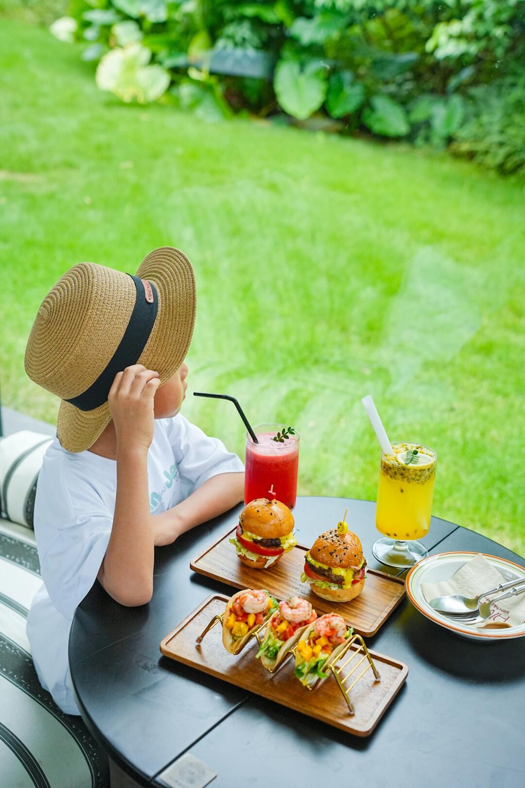 正逢饭点,太阳🌞炎热,所以带娃进了一家森林餐吧吃个午饭🍴