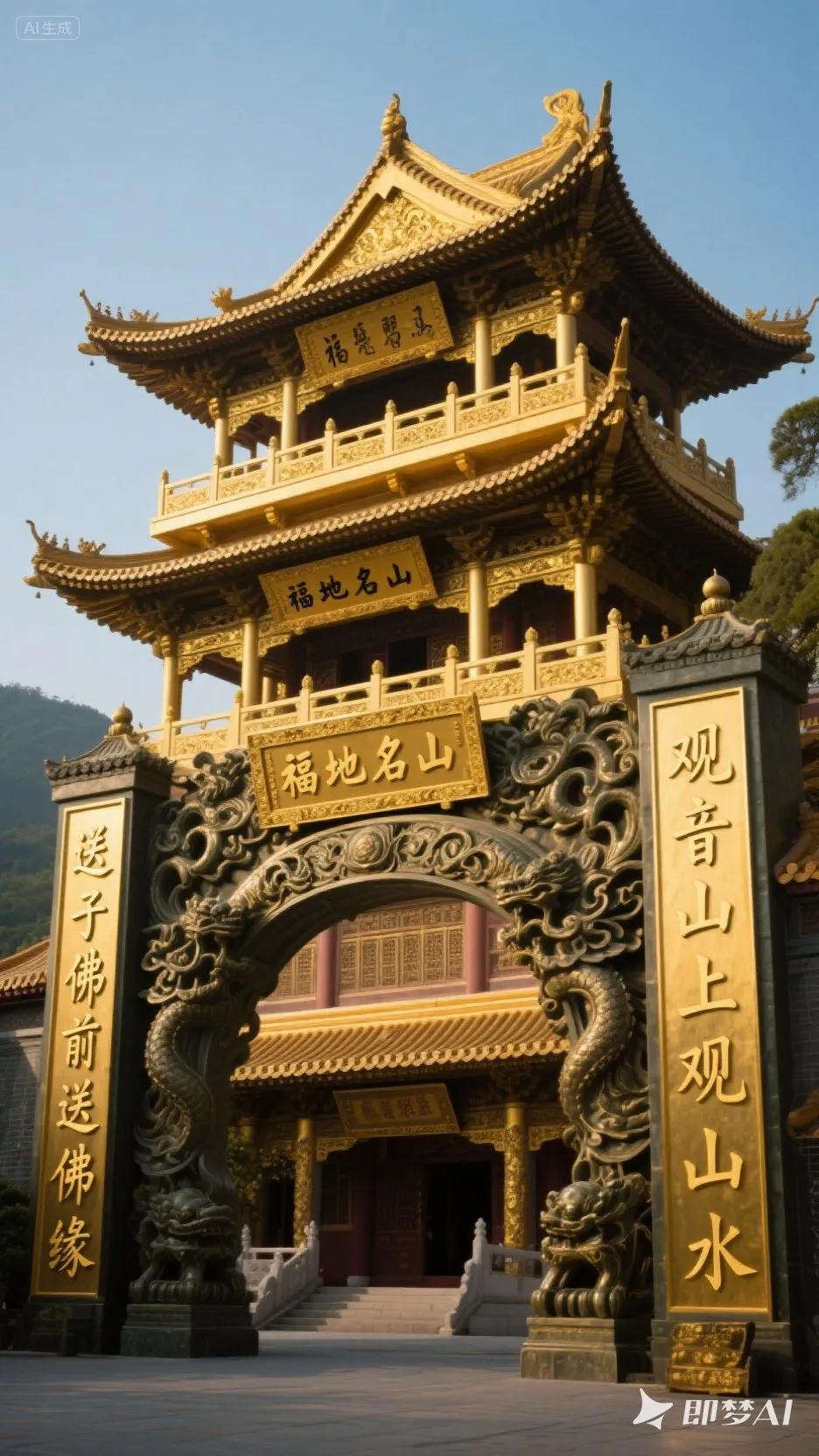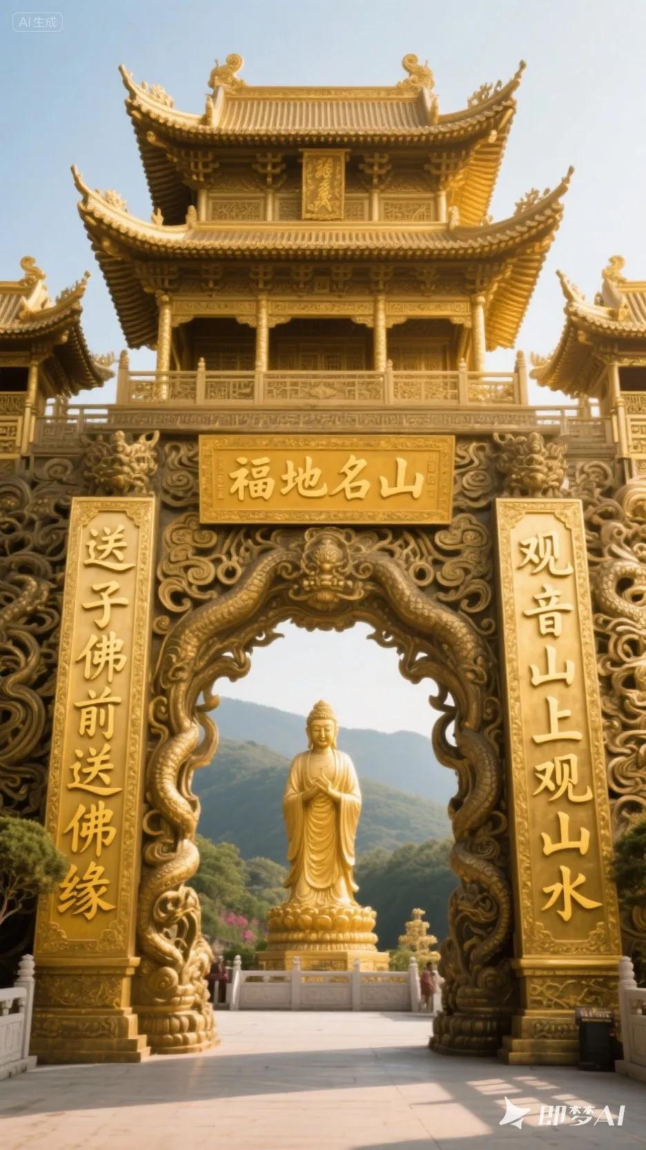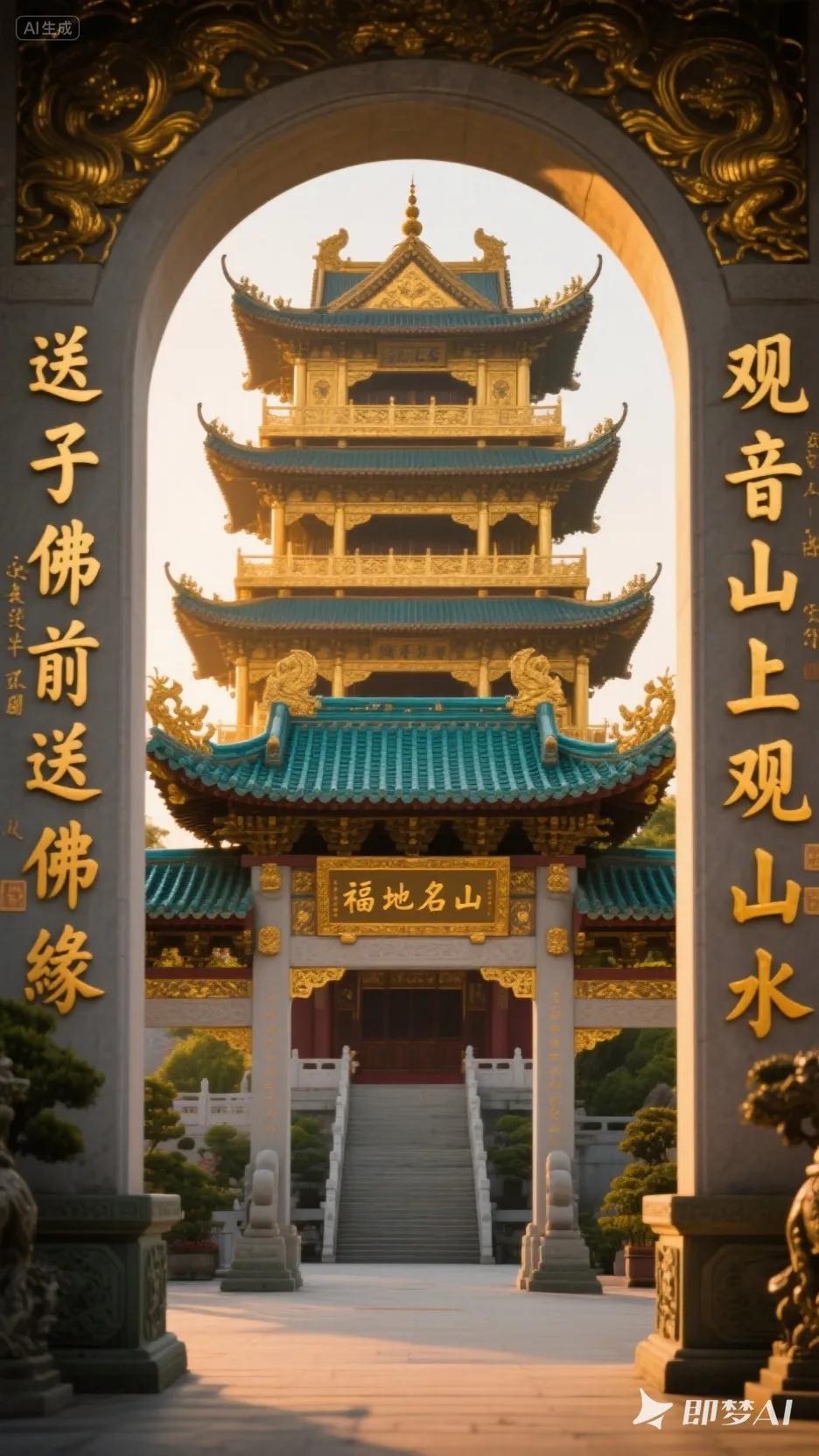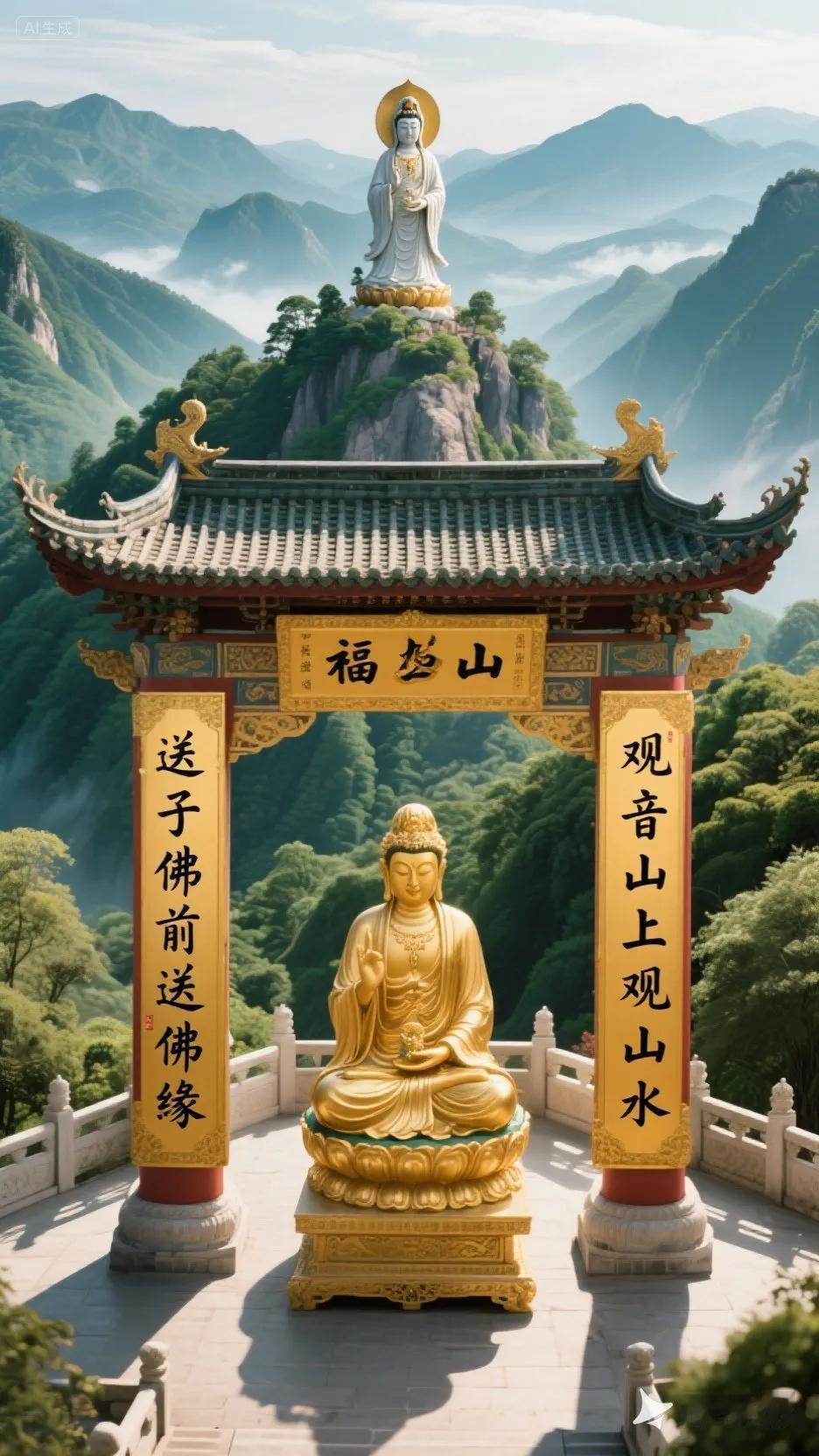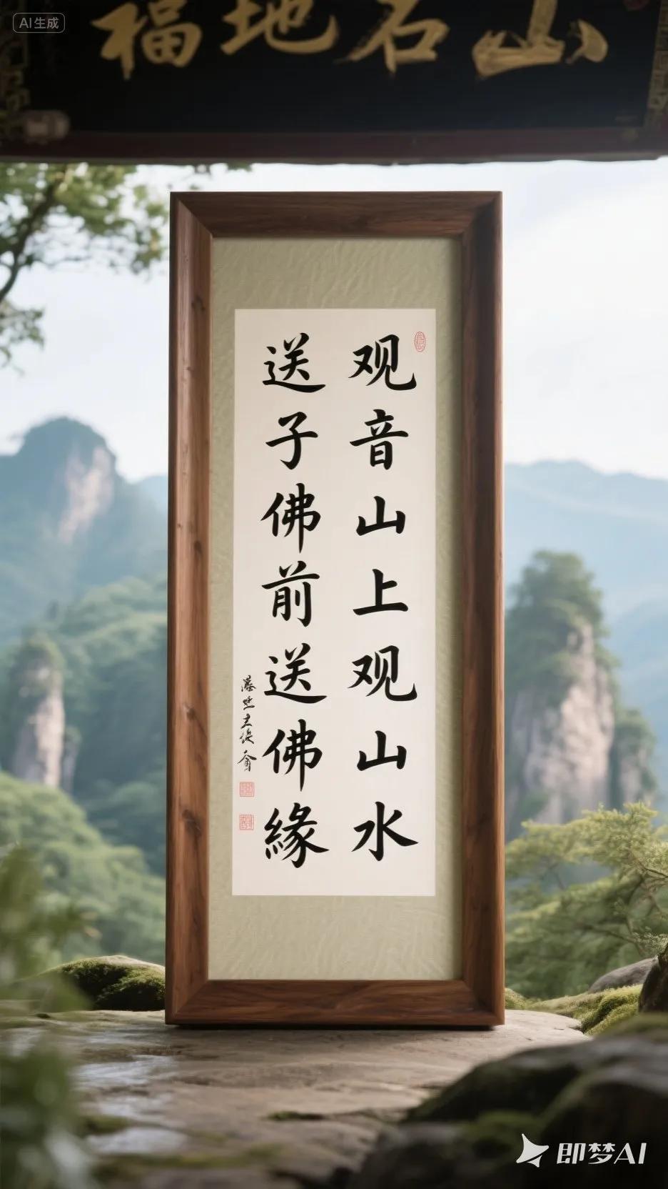 用AI给咱对的观音山对句做几张图片,原创发表以证明是咱原创