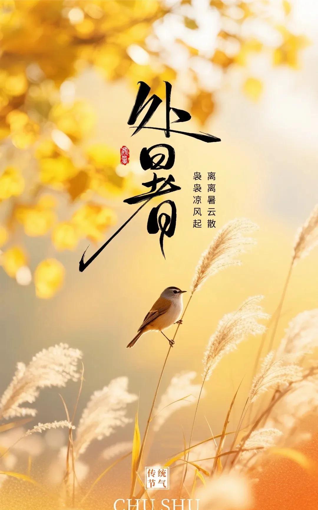 《处暑吟(一)》 处暑初临暑气收,云笺漫卷映清秋。 风梳黛岭千峰瘦,露染丹枫万壑幽。 雁字横天书远梦,蝉声落日诉离愁。 且将桂影斟成酒,醉看星河枕月舟。 《处暑吟(二)》 残阳熔金染暮川,烟波织锦覆汀洲。 芦花荡里浮鸥影,稻浪丛中隐鹤俦。 石径苔痕凝宿露,松崖泉韵漱寒流。 闲拾枫叶题新句,寄与西风伴梦游。 《处暑吟(三)》 玉宇澄明霜色匀,瑶池倾泻素蟾光。 寒蛩振羽弹秋律,野鹤梳翎试晓妆。 雾锁层峦藏古寺,霞铺浅渚映沧浪。 凭栏静听钟声远,一任清欢入抱长。
