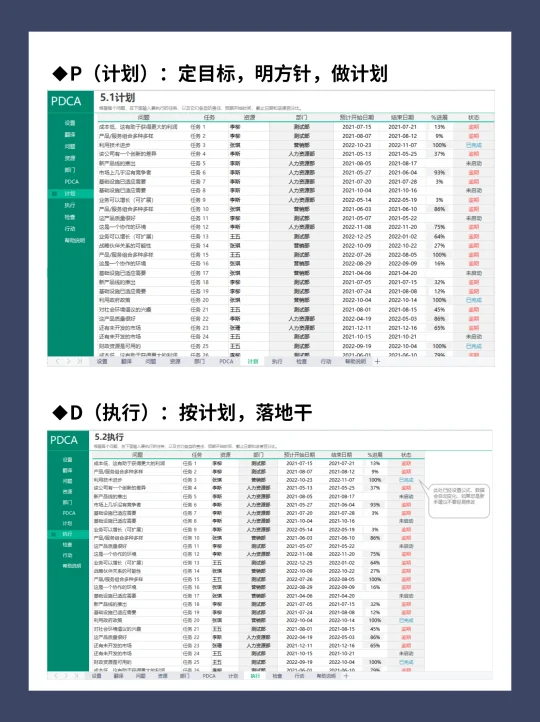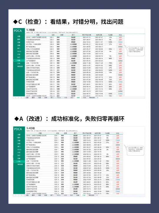 项目经理都在用的效率器:PDCA工作计划表
