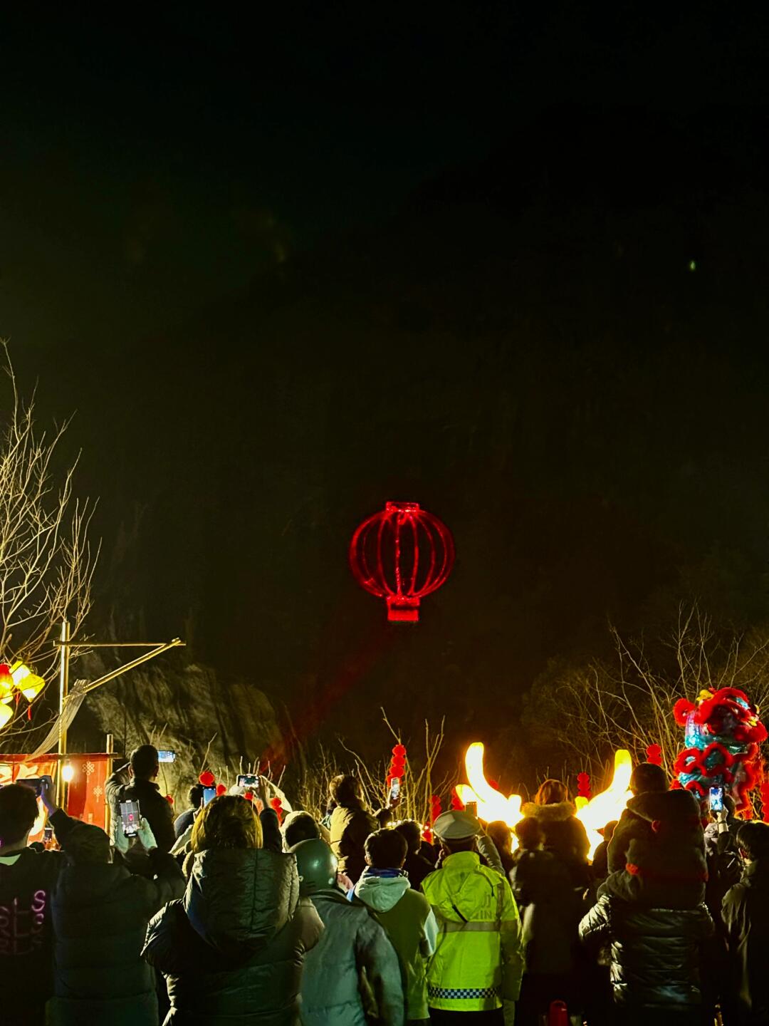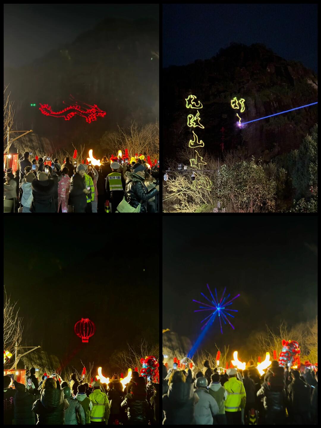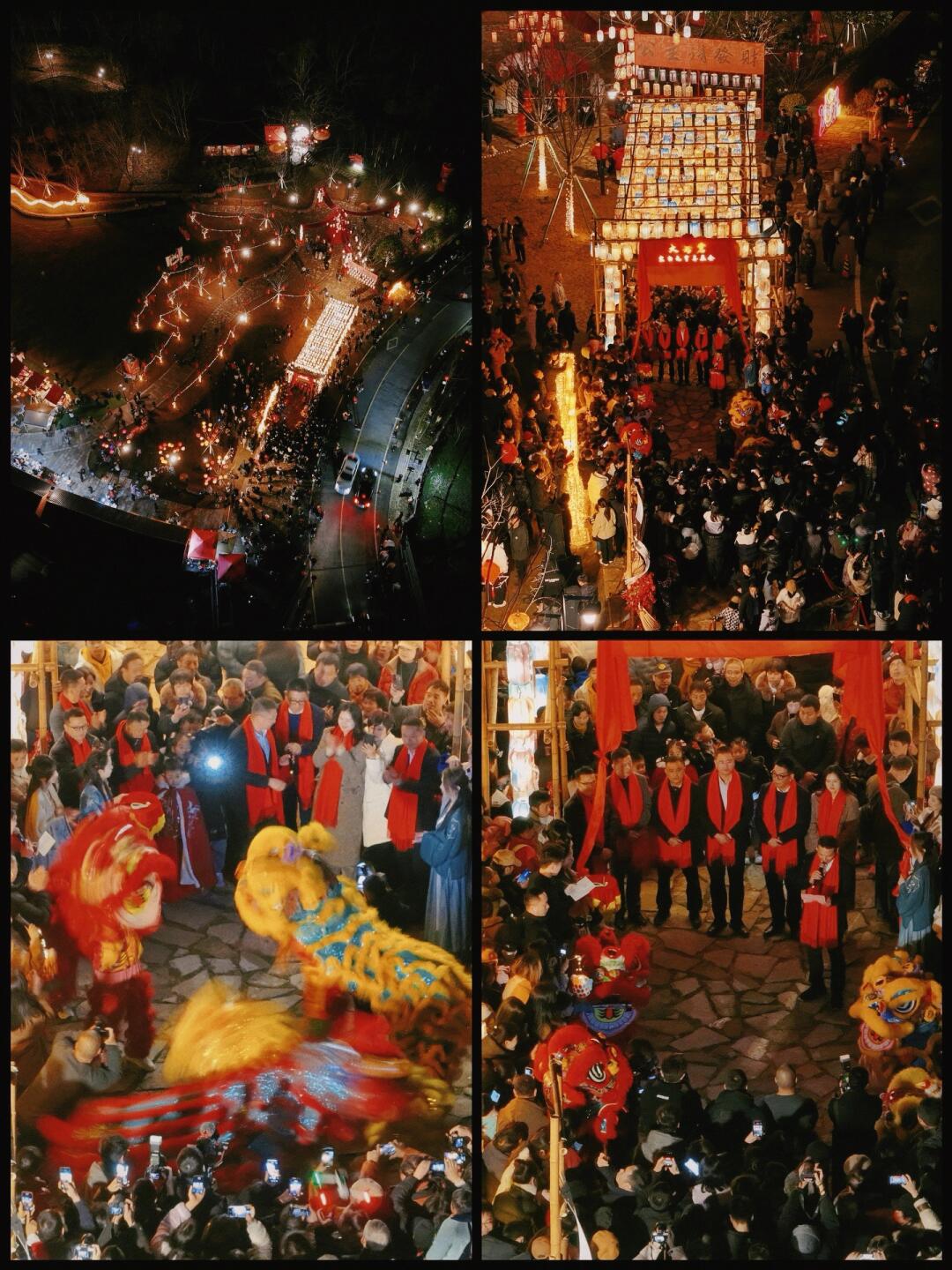 2️⃣红绸揭幕,舞狮表演,点睛吐联最传统的打开方式在山体激光秀的映衬下实现宋今的梦幻联动