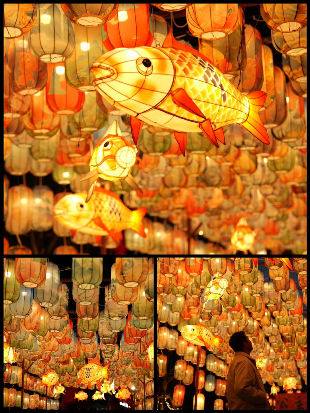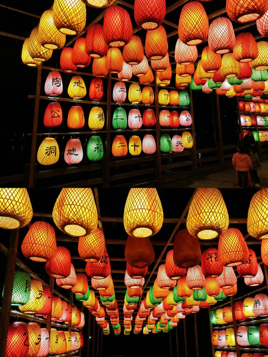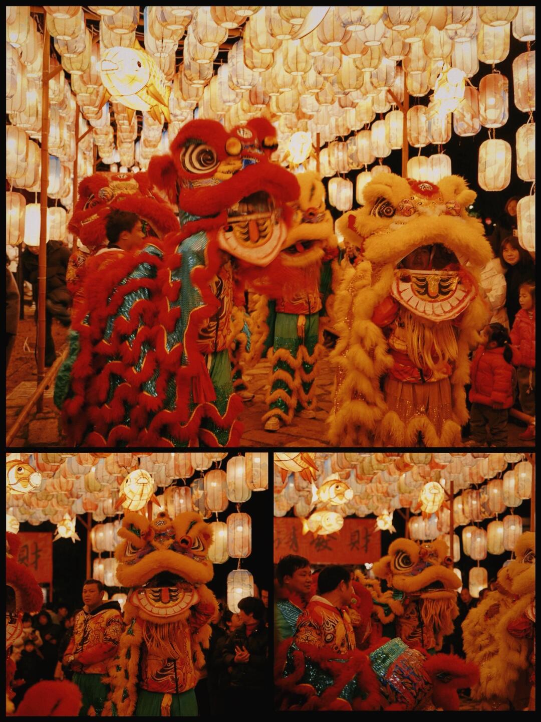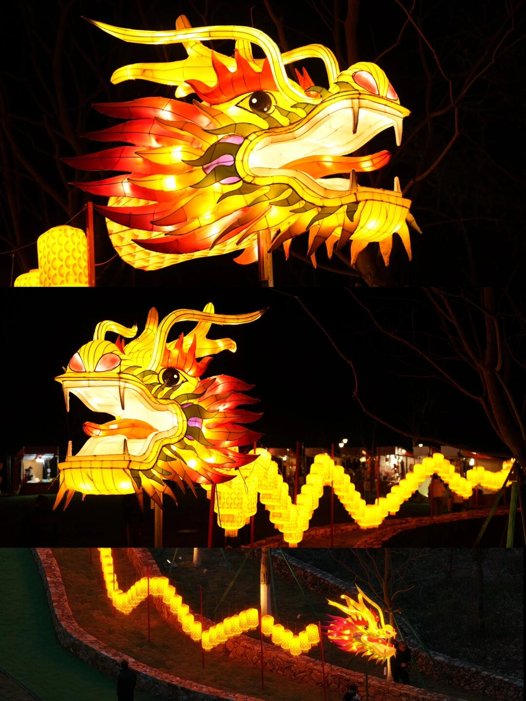 1️⃣ 龙首造型的花灯,链接联排的灯笼俨然一生动恢宏的灯“龙”在夜色的辉映下