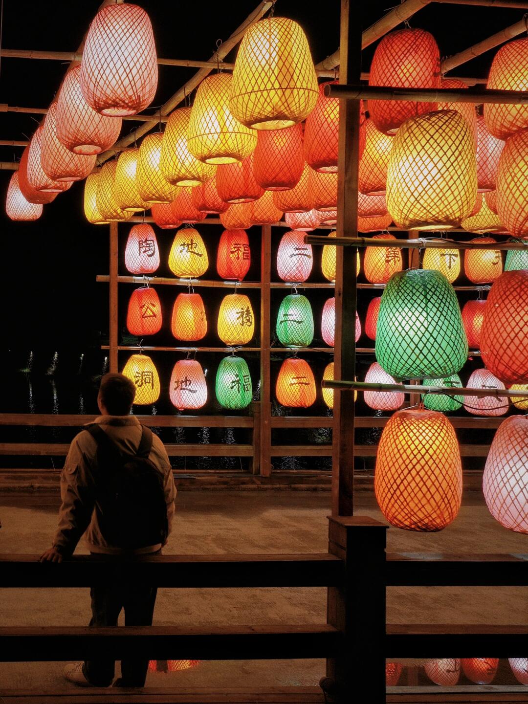 来的时候这个灯会就办在山脚下,看着远处的山雾如仙女般遮住了脸~感叹真漂亮。