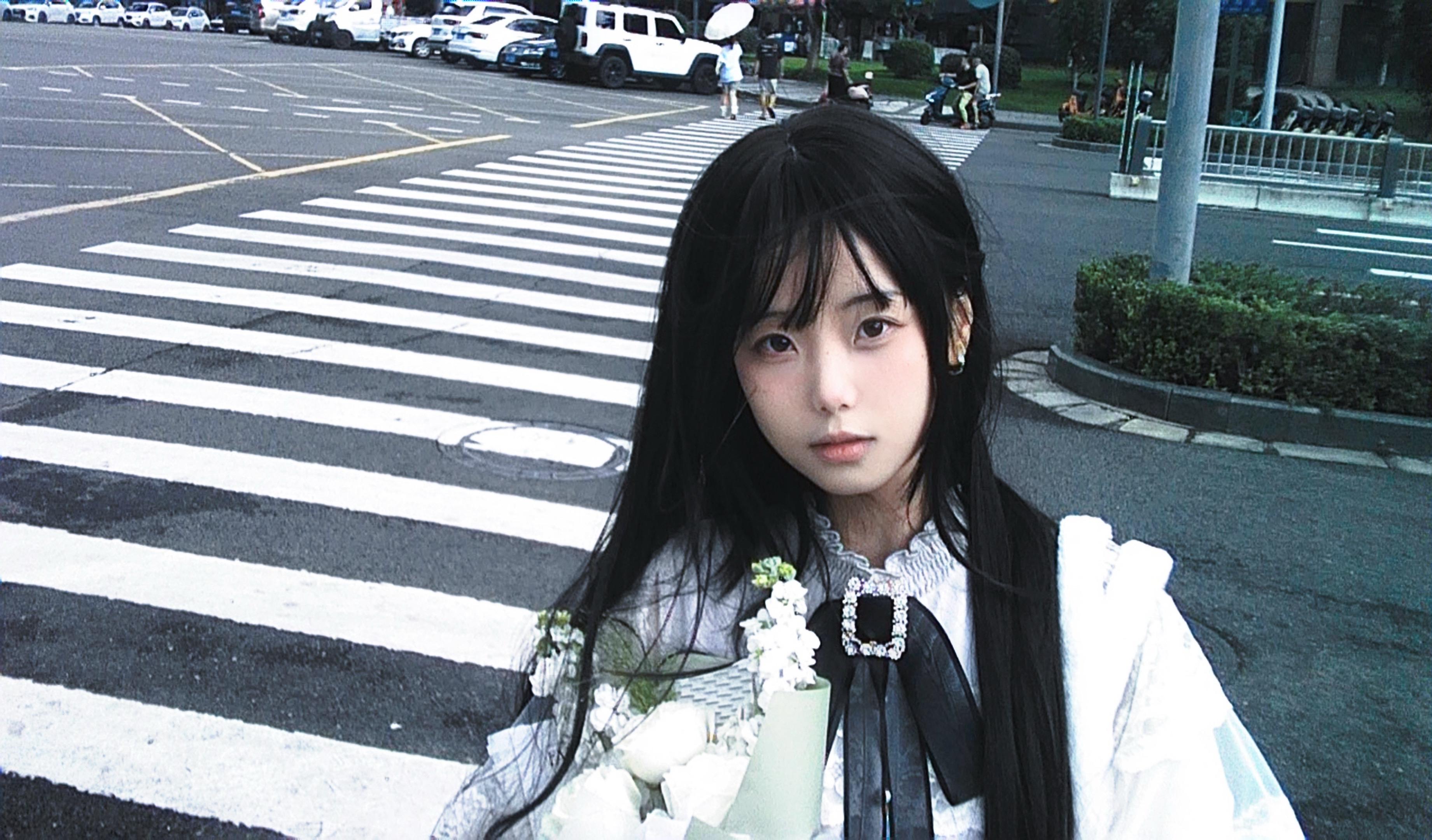 黑发少女与动漫背景的完美融合,复古与现代的碰撞!