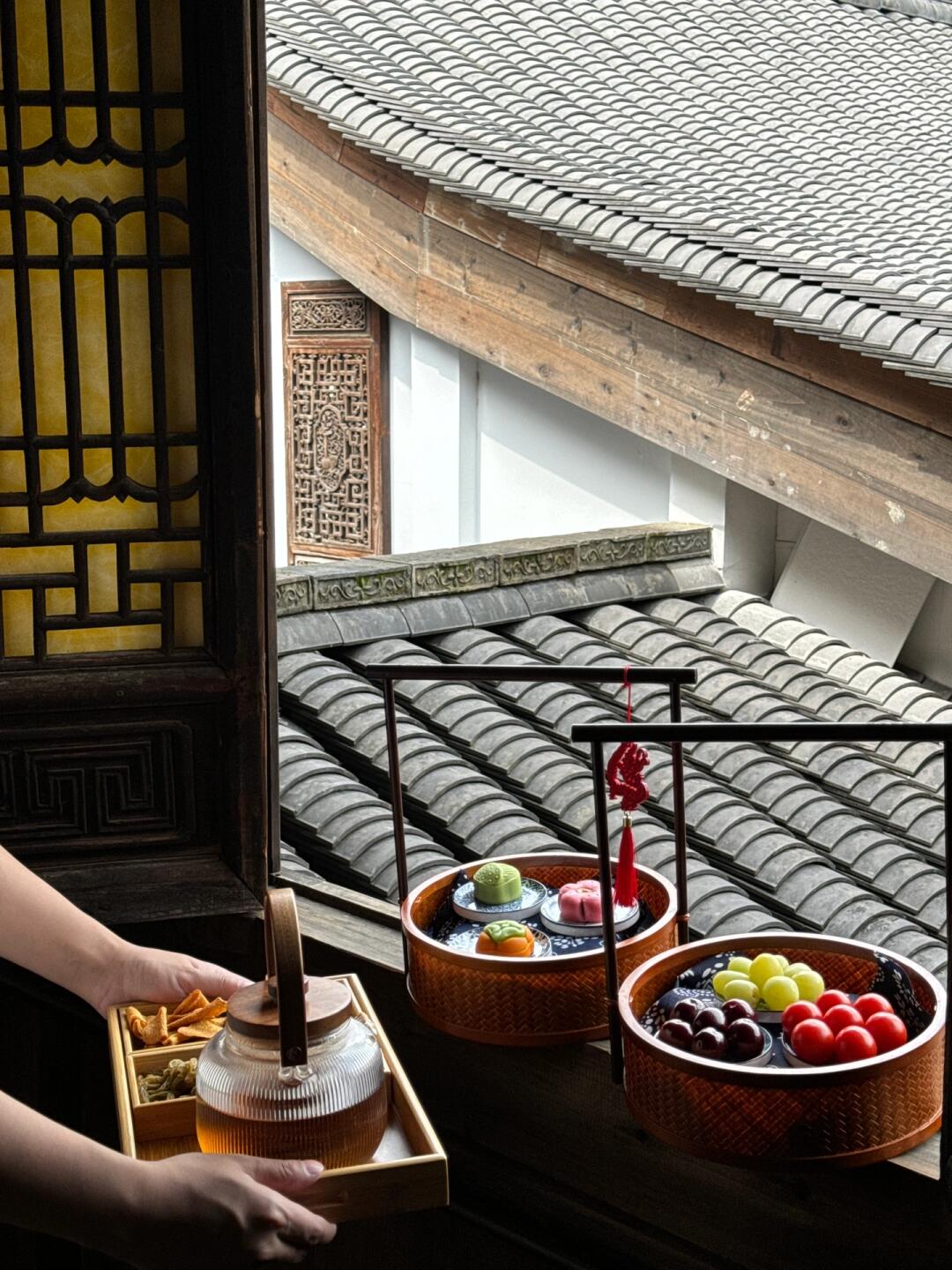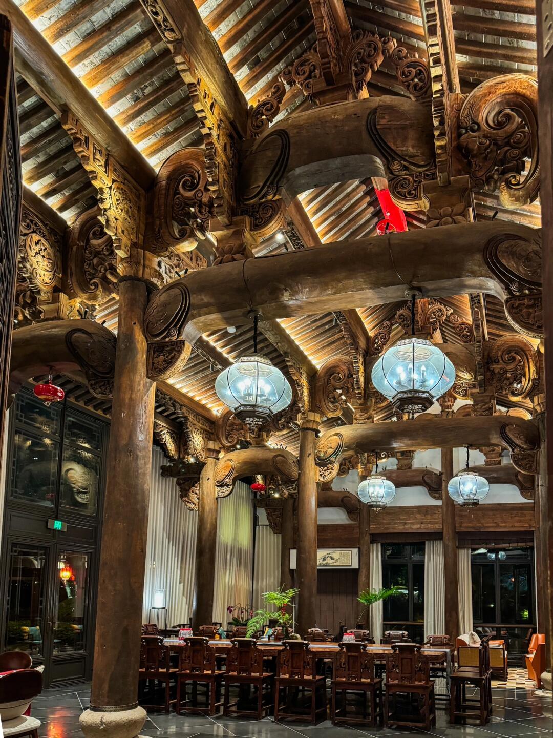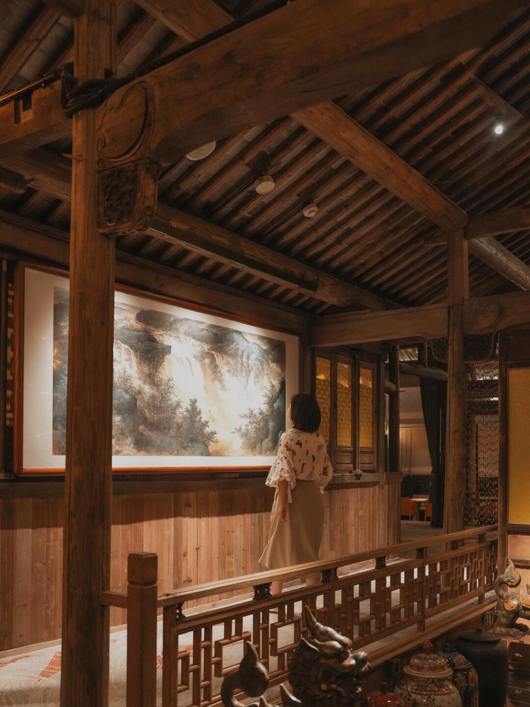 让我们一起坐电梯到二楼的戏台处,吃个古风早餐