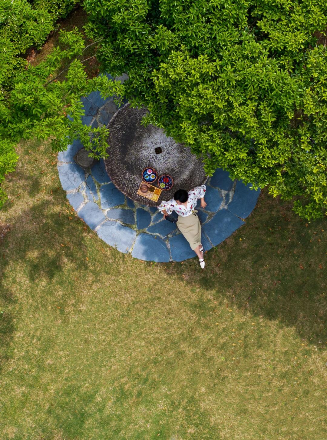 带着点心食盒来到院子里,吹着春日尽里的微风~~