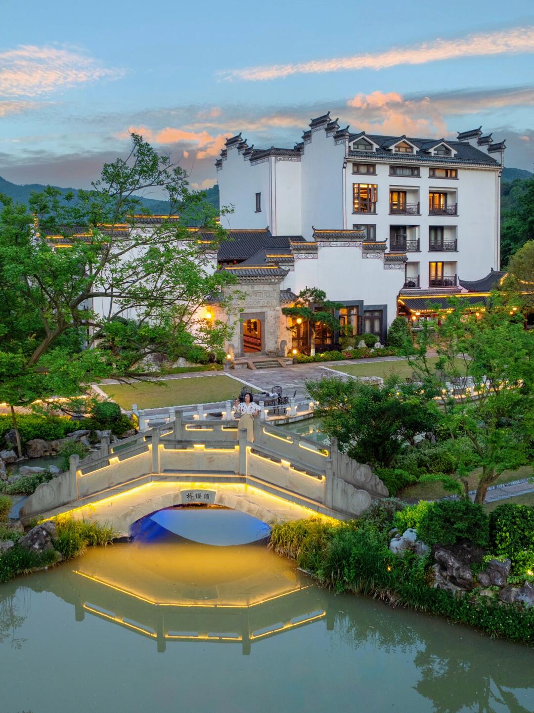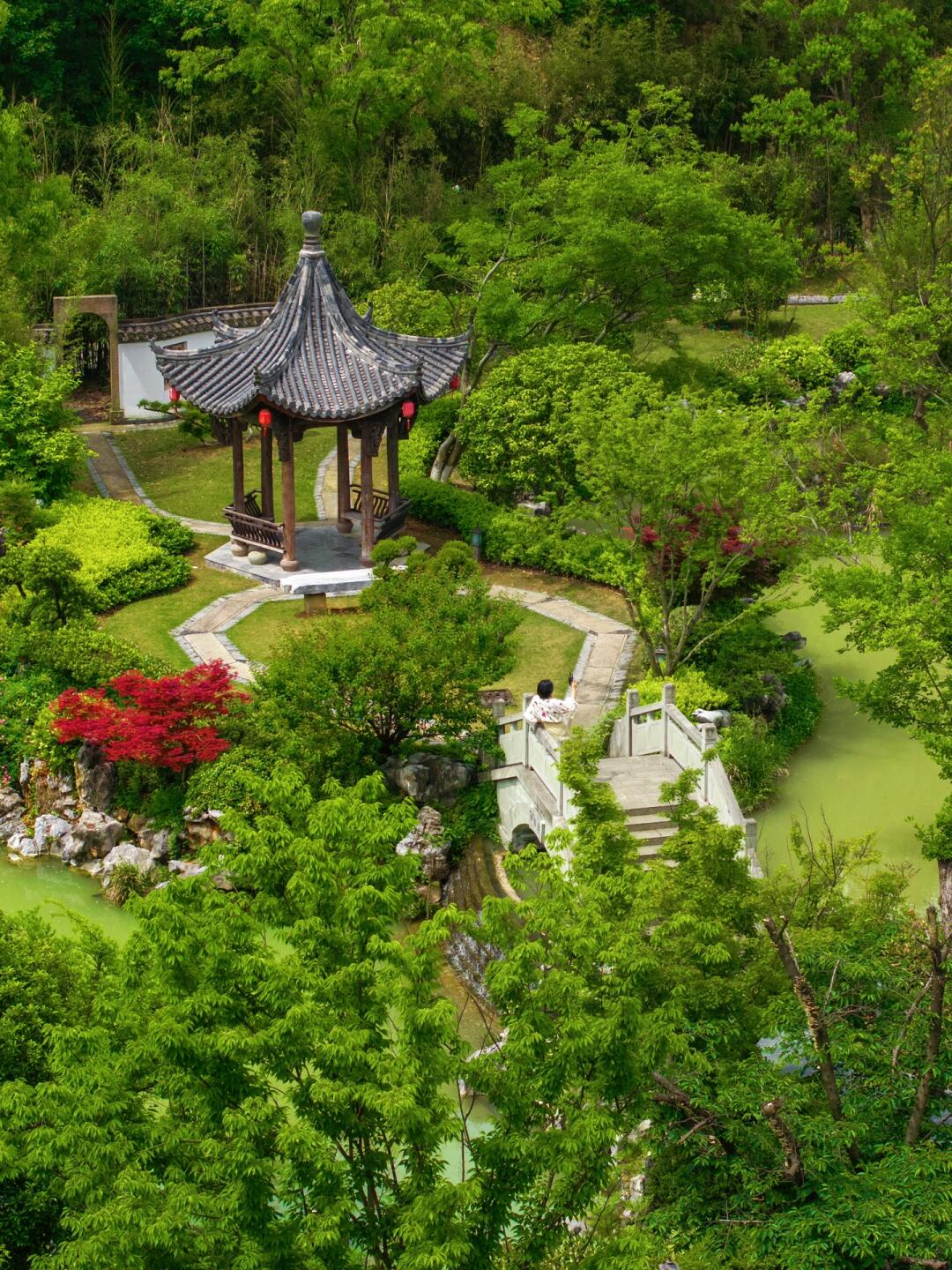 青瓦白墙,园林庭院,石桥流水。