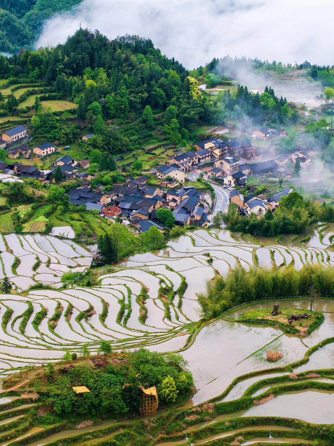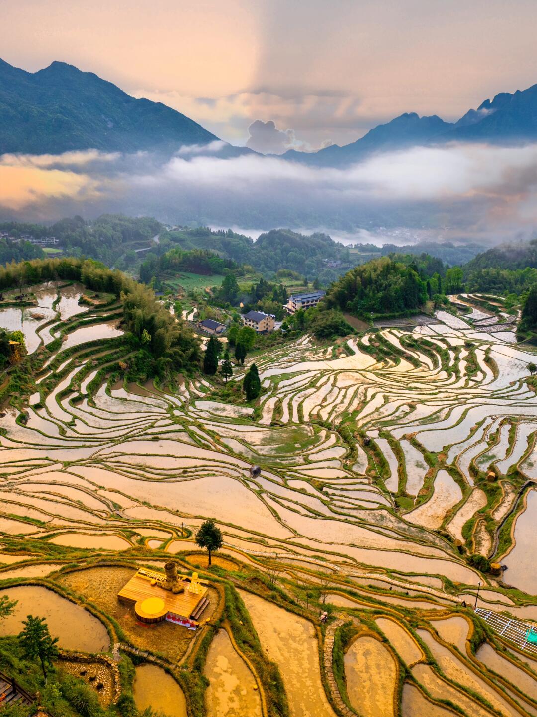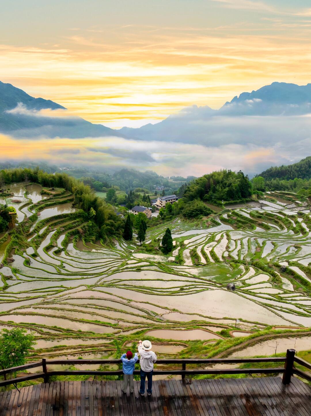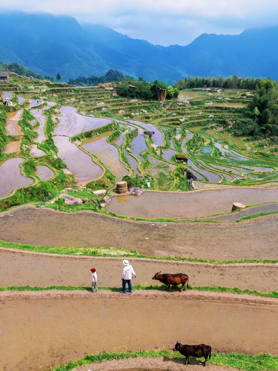 运气好的话当第一缕阳光穿透云层,梯田水面反射出金色的光芒,随手一拍都很漂亮。
