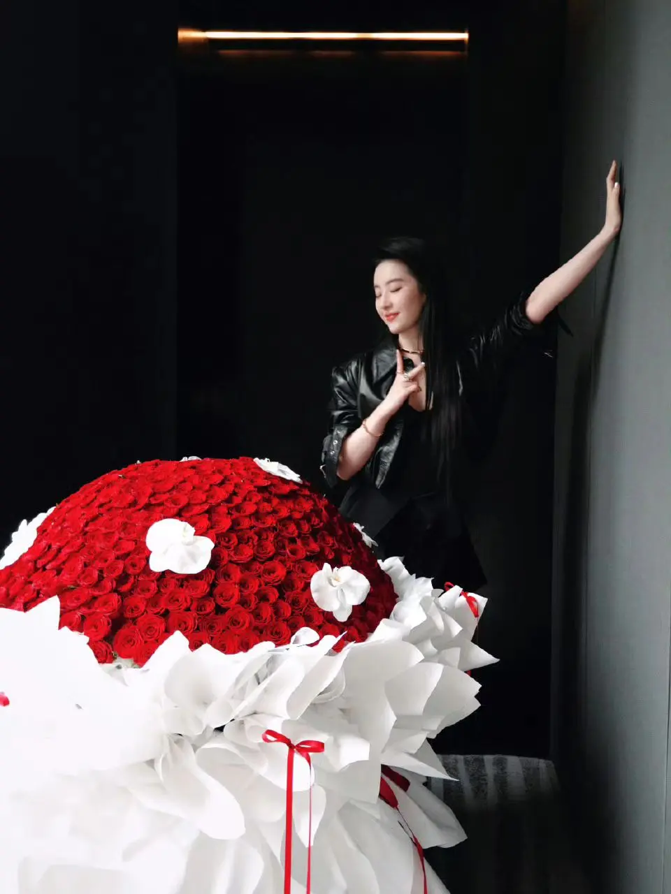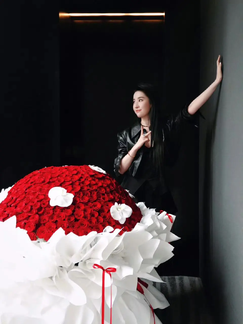 今日新鲜出炉的街拍酷姐。全身黑革皮街拍酷姐刘亦菲