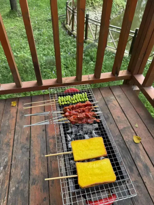 营地提供露营一切装备,帐篷⛺,天幕,小木屋里面还有独立卫生间,床🛏,麻将桌,茶台,营地有烤串的炉子,碳,调料,一次性餐具,还有烤串,平时露营大包小包的,来这里啥都不用拿,度假感满满!