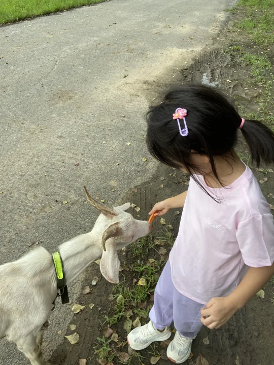 羊🐏看到吃的会着急 顶人 小朋友喂羊的时候一定要保持安全距离,可以给孩子带套备用衣物。