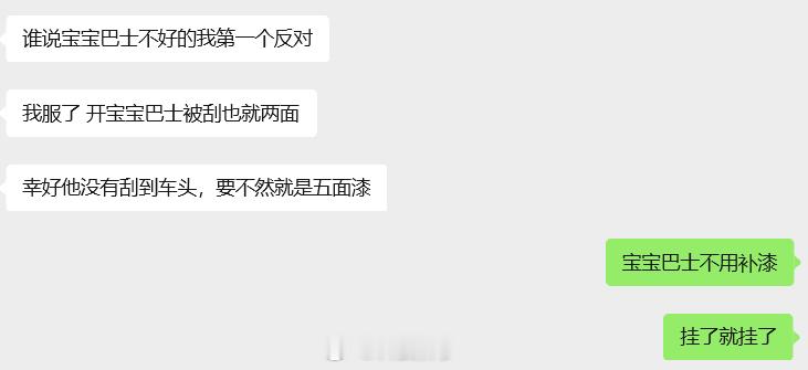 “我服了 开宝宝巴士被刮也就两面”,“宝宝巴士不用补漆,刮了就刮了”
