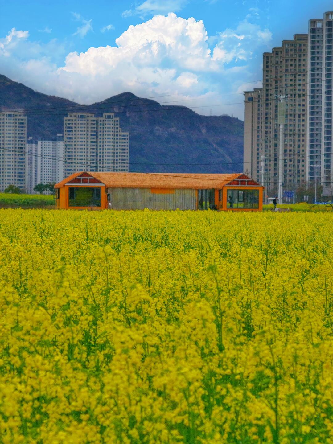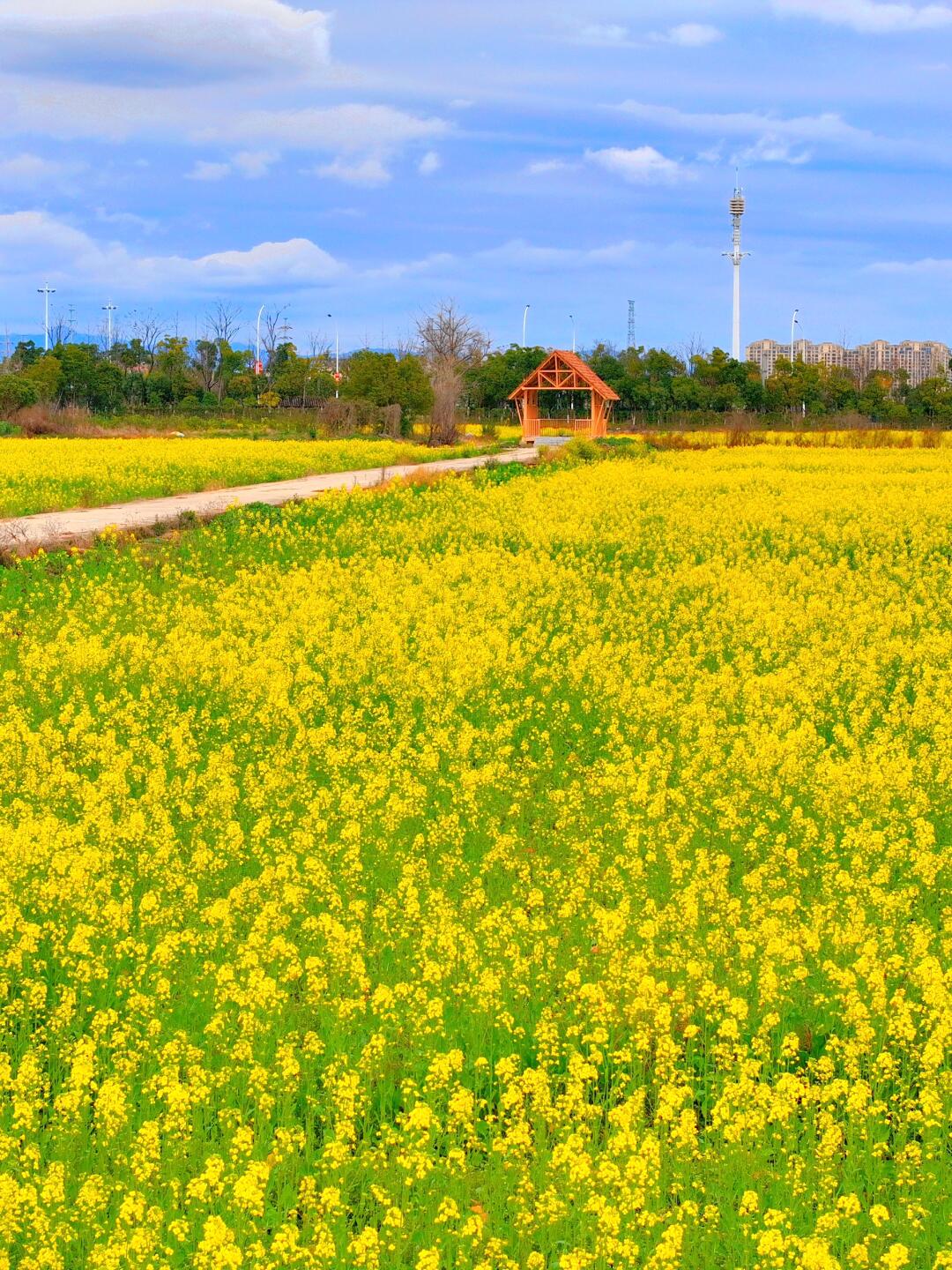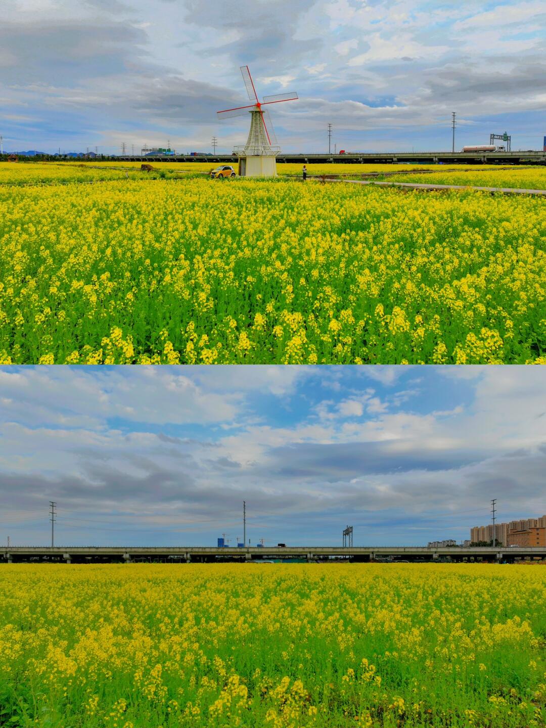 现在该轮到中央绿轴的油菜花了~