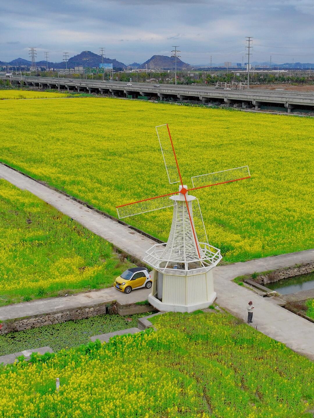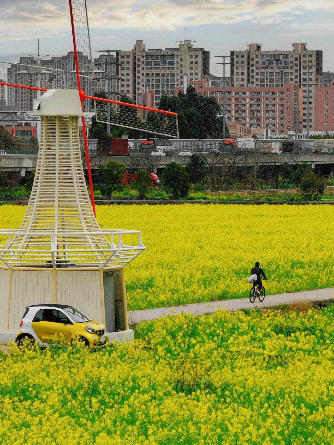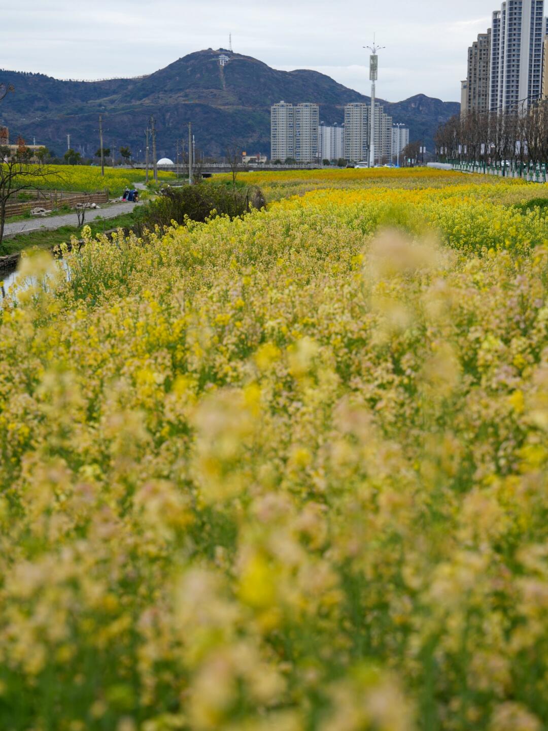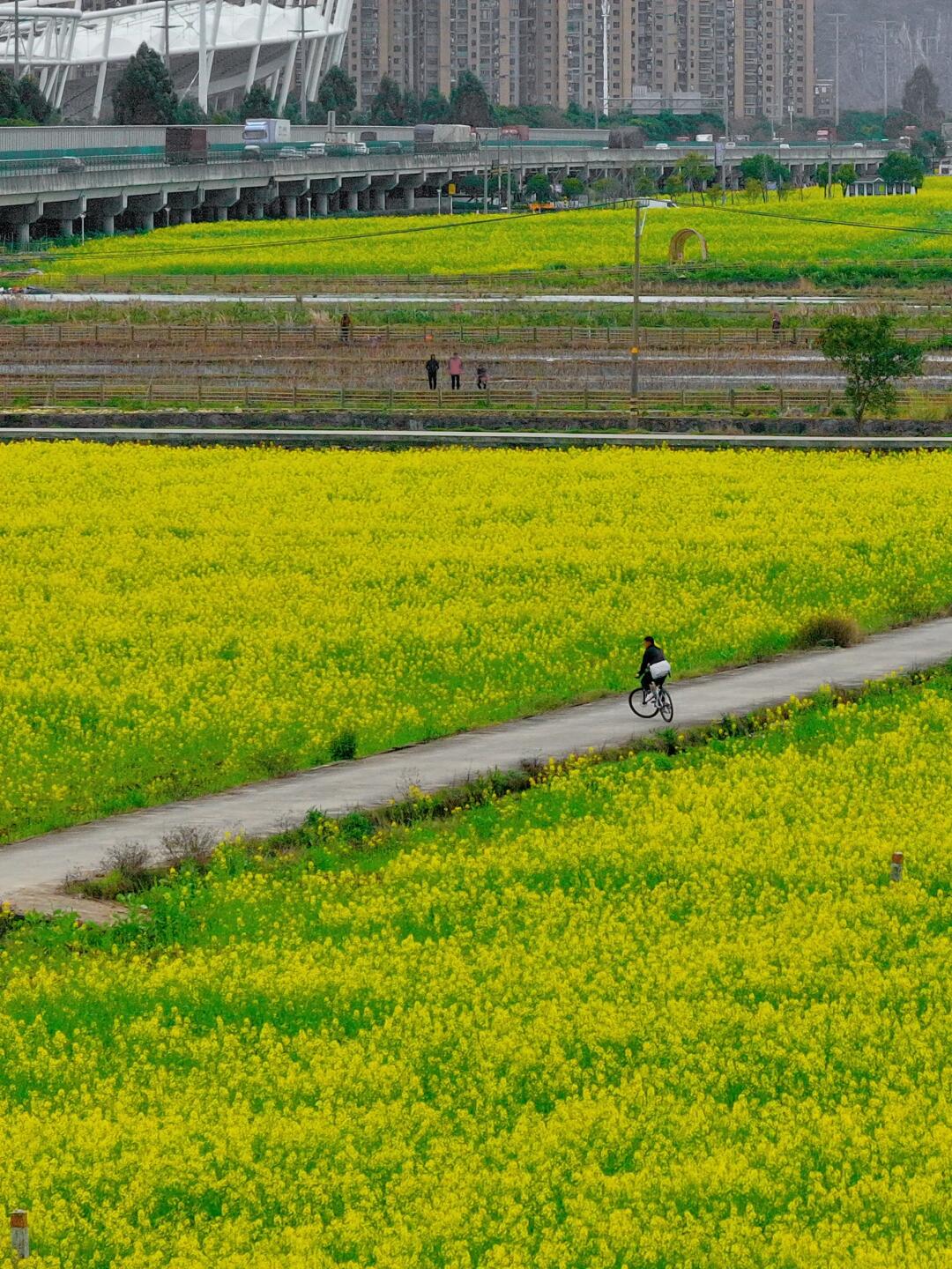 现在该轮到中央绿轴的油菜花了~