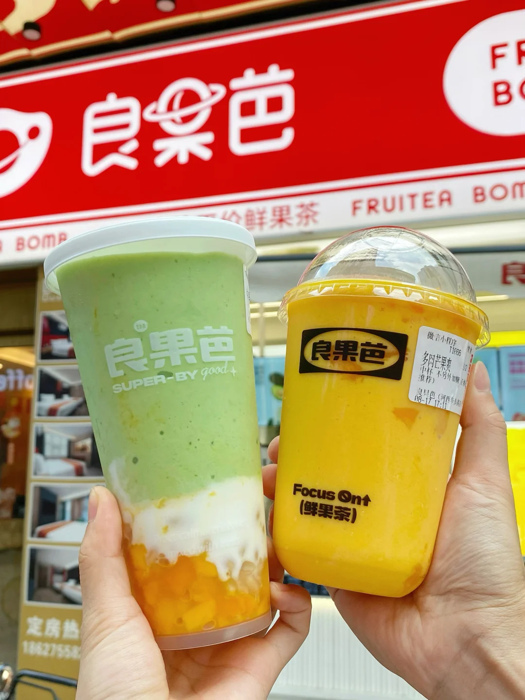 良果芭出品升级后,这两杯我真的可以疯狂炫!今天来到门店打卡了两款 ✅ 芒果爽 一拿到手就能闻到浓郁的芒果香,仿佛闯进了热带果园~每一都是新鲜芒果果肉 搭配底部的冰沙,入口冰冰凉凉,芒果味贼浓! 芒果脑袋只能说,这一杯尊嘟太满足了😌 ✅ 牛油果羽衣甘蓝芒芒 主打的就是轻食主义,羽衣甘蓝中和了牛油果的油脂厚重感,新鲜芒果果肉自带奶香,香甜的味道直接在嘴里爆开 而且听说七夕还有大活动,良果芭要跟豪门恋爱? 快艾特奶茶搭子一起试试吧!!