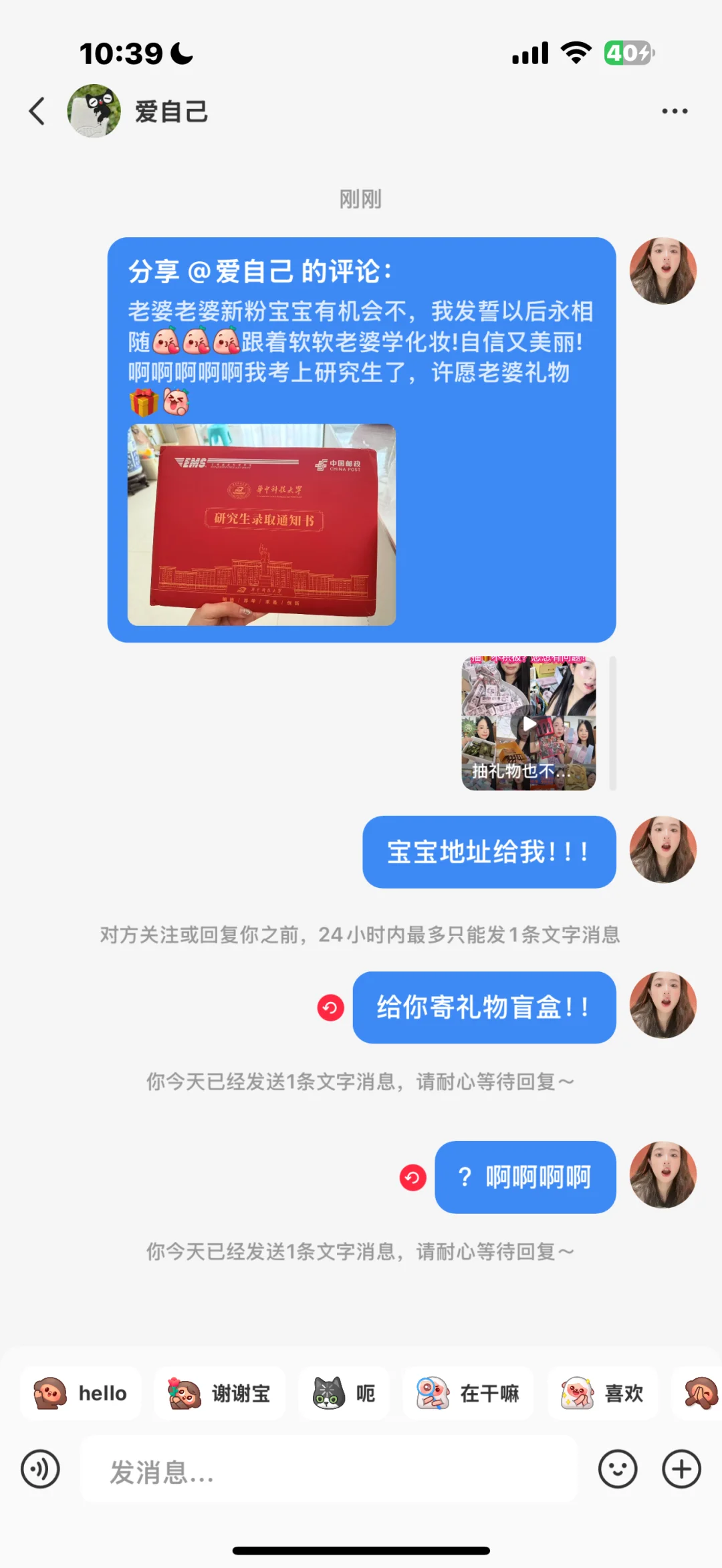 做博主崩溃的第n+1天!都不回我😢又当舔狗!