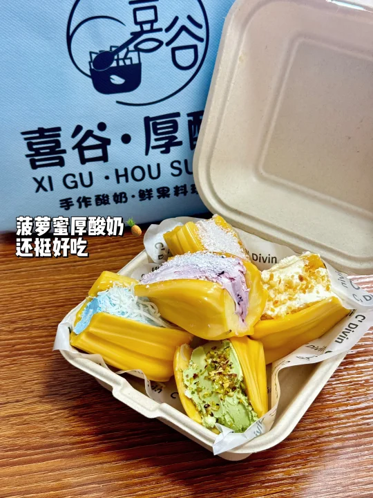 菠萝蜜夹酸奶,第一次见!喜欢吃酸奶碗和菠萝蜜的可以冲