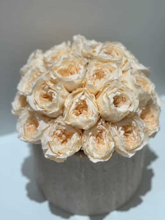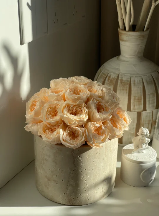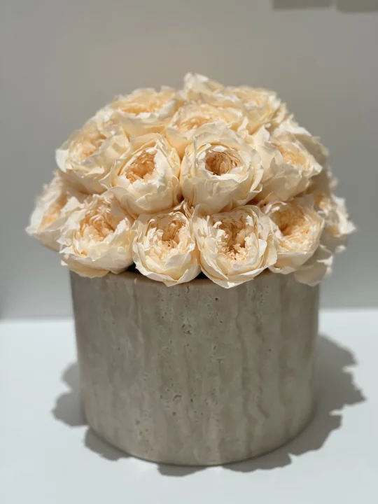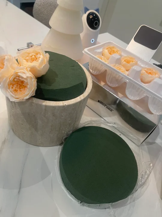❤️总计:353.75💰 🤟洞石桶 238💰 🤟花泥4.75💰 🤟奥斯汀玫瑰永生花28朵合计111💰 (普通玫瑰花型便宜点,按自己喜好选择)