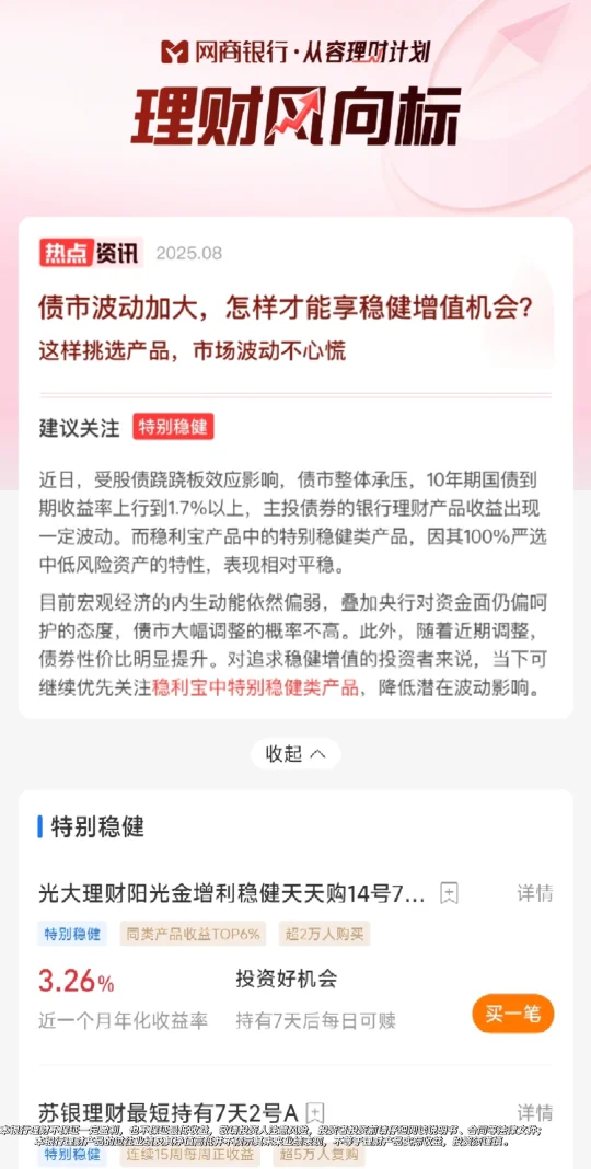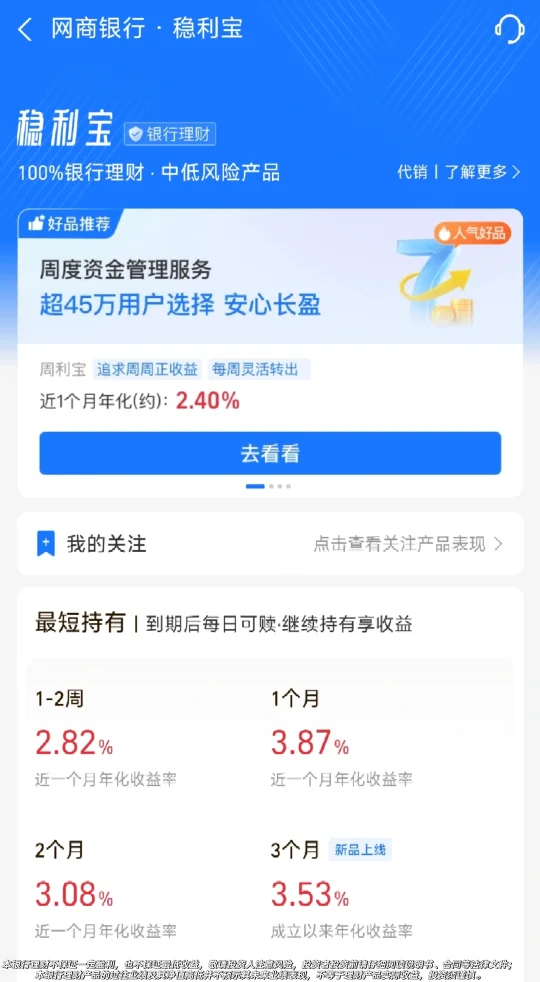 只要上支付宝🔍【稳利宝】or下载网商银行APP就能选择你想买入的产品,跟着步骤操作就行很方便。