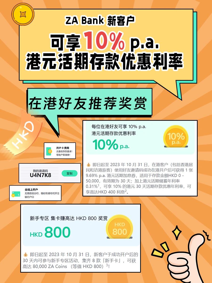 ✅一些港币、八达通 (往常都是VX、ZFB➕现金,这次打算用新开的za bank,主打一个穷游省钱,很多店都有咖啡面包买送1,而且购物🛍啥的也有折K,用了你就惠感觉之前来HK都亏了!而且操作简单,几分钟在📱线上就可以搞定,像我们这样一年都至少要去个几次HK 🇭🇰的还是比较实用滴,现在用邀请code还送加息Q,真的nice!)