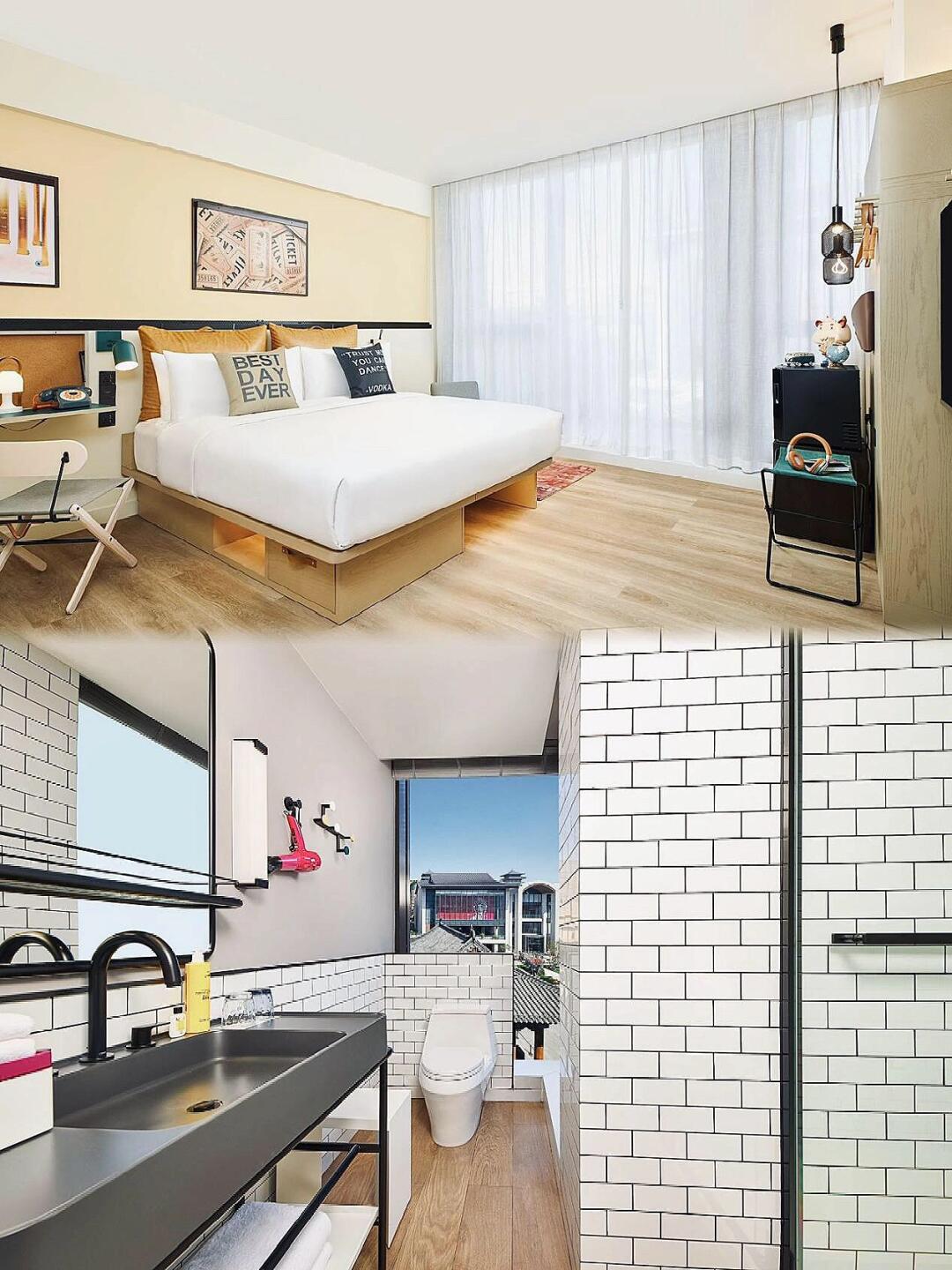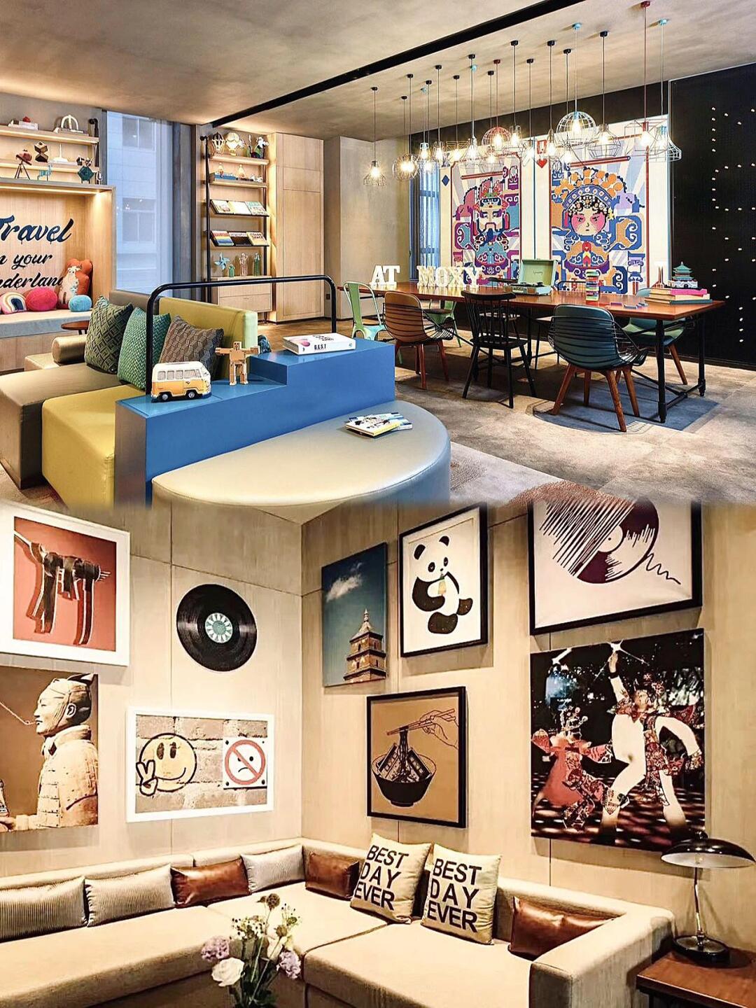 这次是因为出差✈️才来西安的,想说为了距离要去的公司比较近,所以订的是西安城市中心Moxy酒店🏨,在西安易俗社文化街区这边,老实说,看到这酒店的时候还是挺惊讶的,这是一家很有艺术感的酒店🎨。