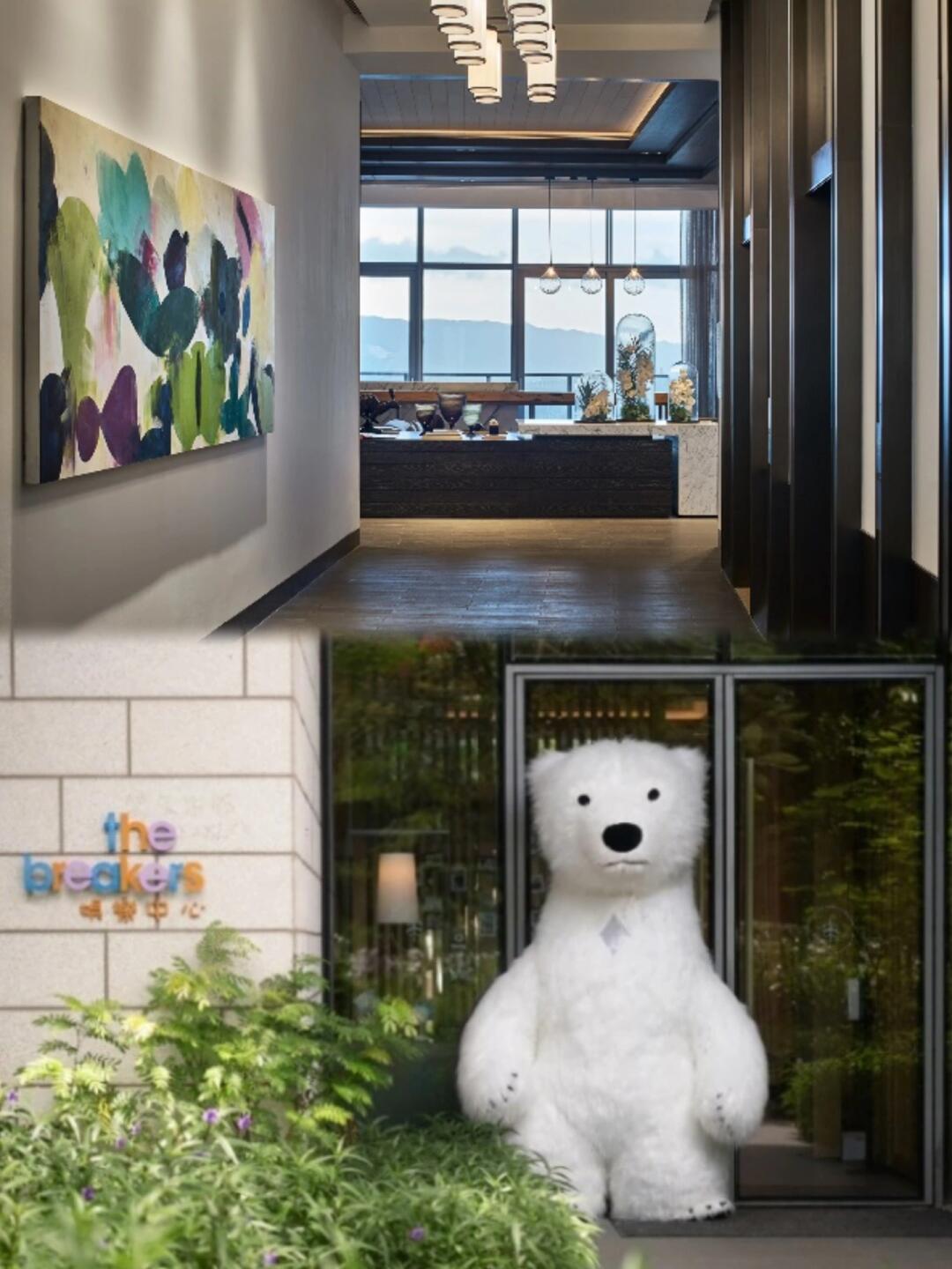 旁边的"冰淇凌熊"趣味雕塑也很有趣,酒店员工介绍北极熊手中融化的冰淇凌🍦是为了呼吁人们共同爱护我们赖以生存的地球🌍,相当有意义的一件作品。