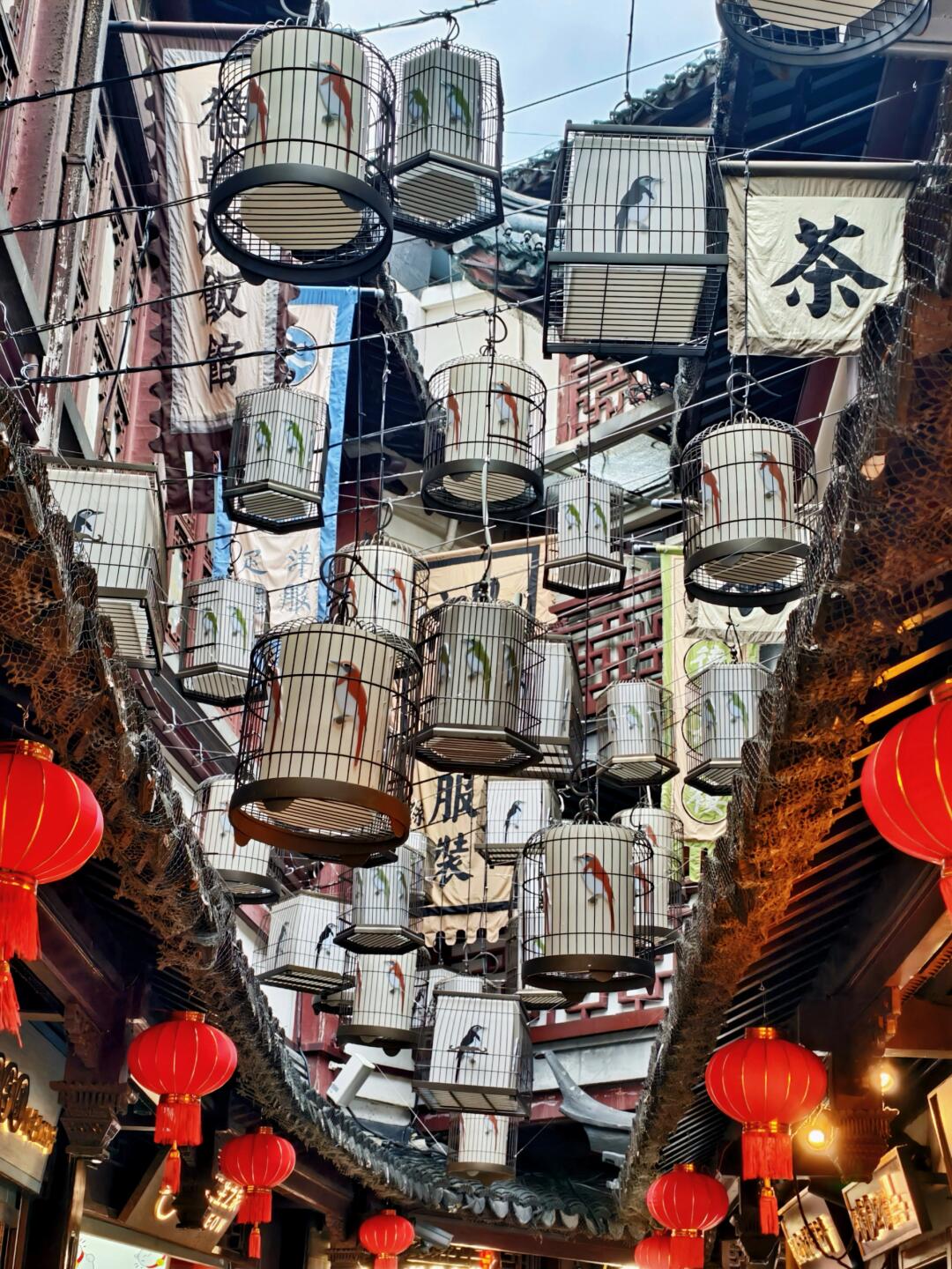 4️⃣【声画鸟笼】- 百翎巷:会发光的鸟笼装置!光影交织配上模拟鸟鸣,豫园的味道藏在这奇妙声画里,很特别!